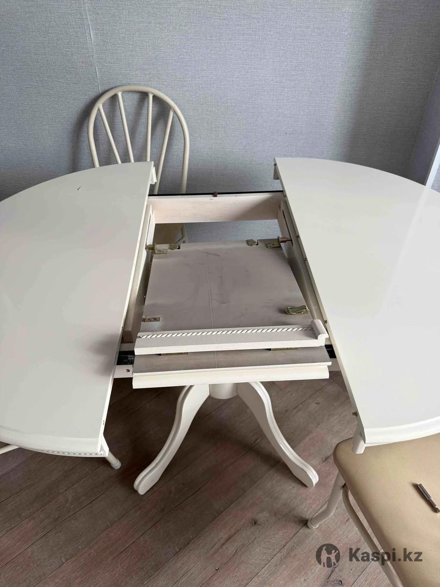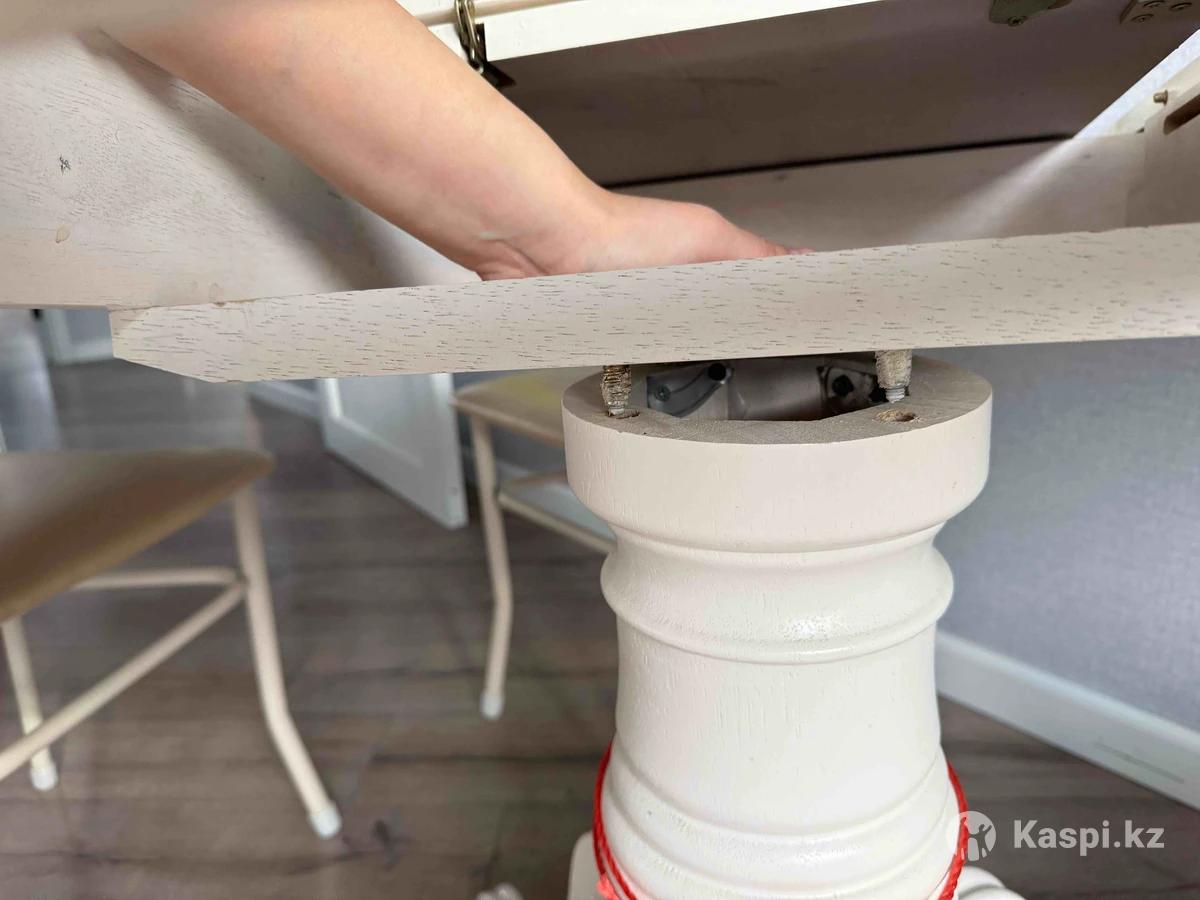 В хорошем состоянии. Стол без стульев. Только стол. Производство: Малайзия Материал: натуральное дерево, дуб. отличное качество Форма: круглый 105х105см Раскладывается — в разложенном виде овальный (как на фото) Нюанс: требуется закрепить болты к ножкам, по другому. Такой новый добротный стол стоит как минимум 200 тыс. Если бы был без скол и проблемами болтами продавали бы как минимум за 80 тыс. Отремонтировать свою же ножку стоит около 10тыс может, а новая ножка на заказ 15 тыс контакты мебельщика есть и просто закрепить самим , отреставрировать 40-50 тыс. Можно и самим отреставрировать еще дешевле. Нету просто времени заниматься. Стол раздвижной имейте ввиду. Продаем в связи с переездом, но не спешим с продажей. Хотим обновить, но если не получится продать, то просто купим новую ножку. Самовывоз: Ауэзова / Жандосова ( помещается в принципе в легковую машину: ножки отдельно, вверх отдельно)