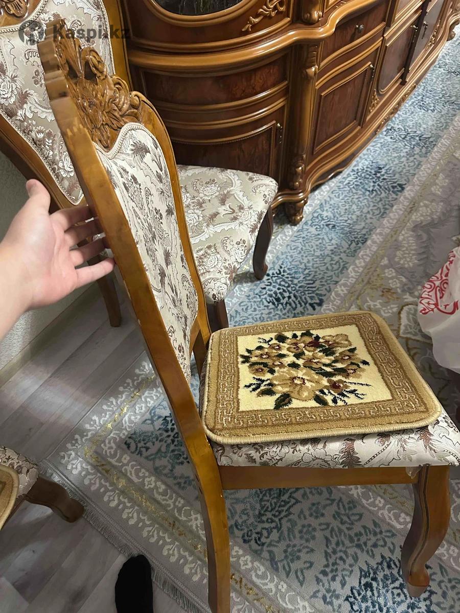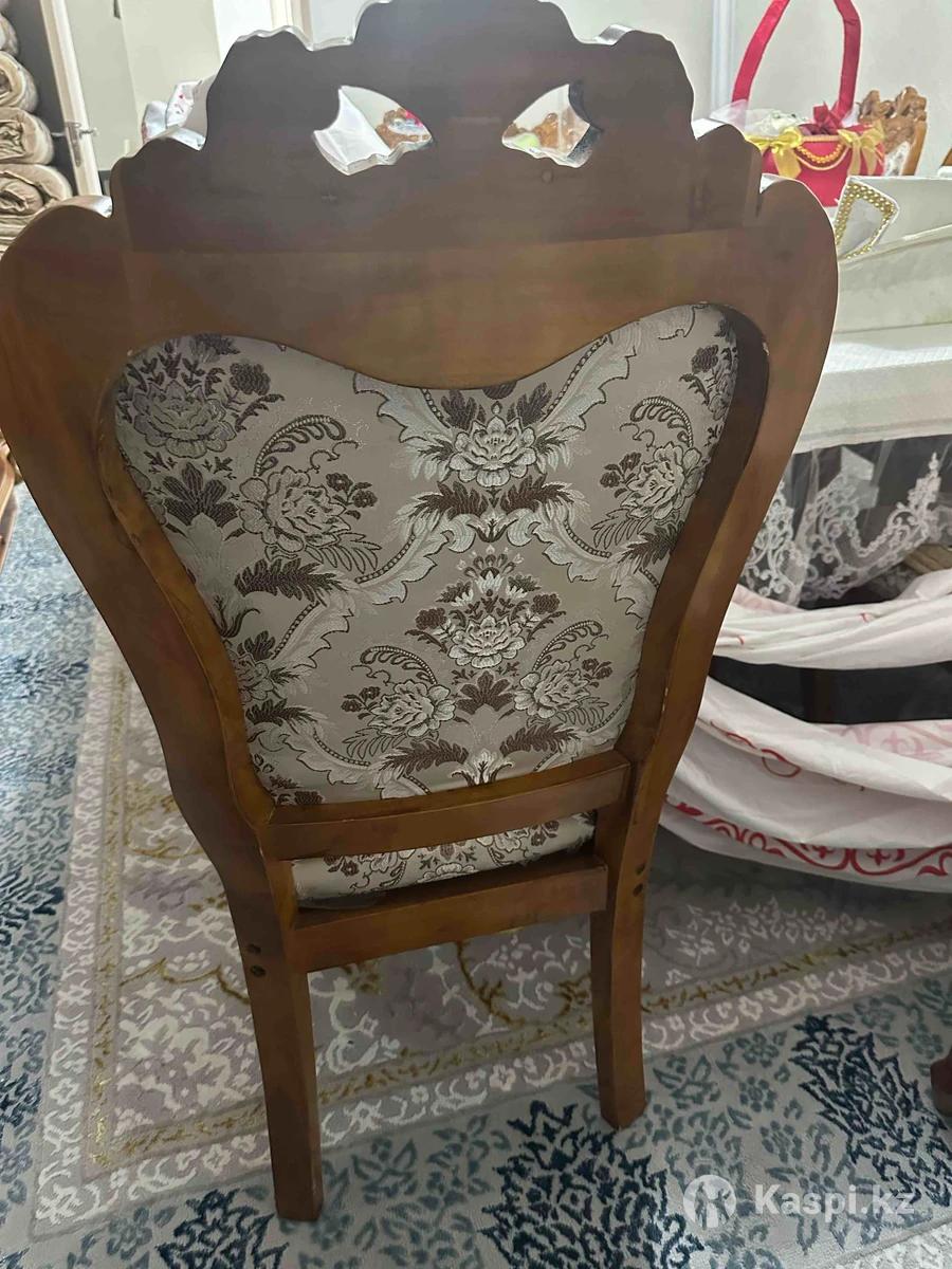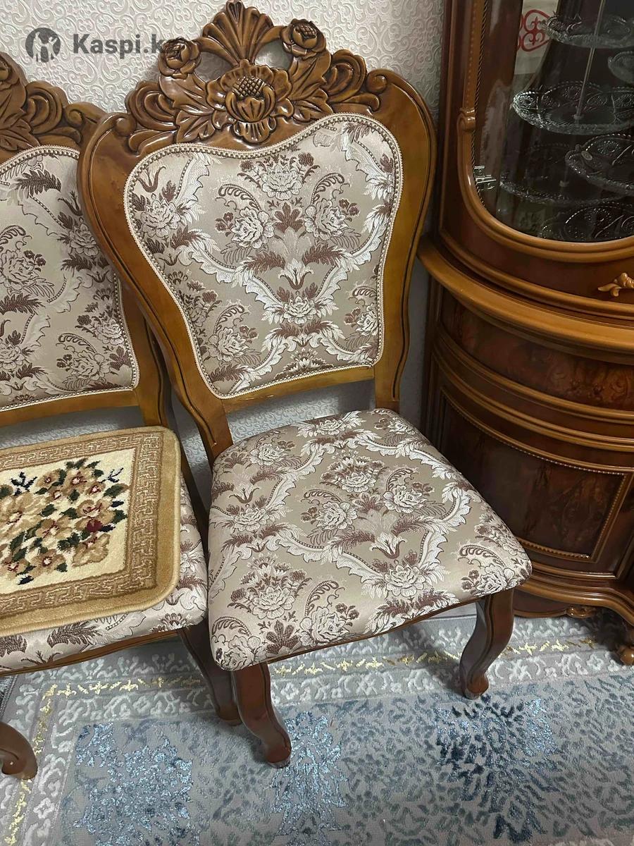 Продается стильный деревянный стул в классическом дизайне. • Материал: массив дерева, прочная и устойчивая конструкция. • Обивка: качественная ткань с роскошным жаккардовым узором в бежево-коричневых тонах. • Декор: резная спинка с красивым цветочным орнаментом. • Состояние: отличное, без повреждений, ткань чистая, дерево без сколов. • Подойдет для: гостиной, зала, кабинета Стул выглядит дорого и станет украшением любого интерьера. Есть 12 штук каждый по 11000 тг