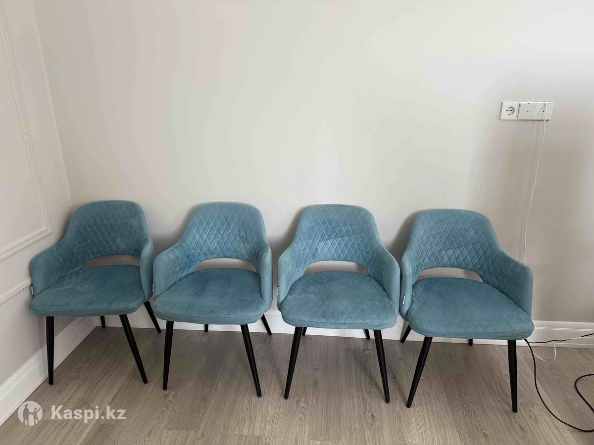 Каркас сиденья и спинки эргономичные,изготавливается из гнутоклееной фанеры.Материал обивки,велюр.Мягкая водоотталкивающая обивка имеет декоративную сетчатую стежку.Основание стула:металлические опоры окрашенные порошковой краской.Размеры:на опорах Абсент-54х56х79,9см(высота сиденья 66,5см).Производство Россия.Всего 4 шт.после химчистки.Покупали в ТД Тулпар за 50тыс.