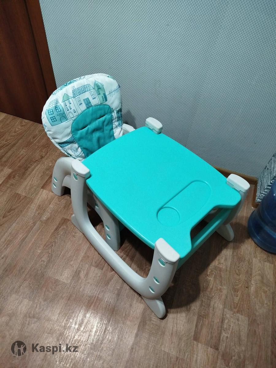 Тип -трансформер Максимальный возраст-5 лет Ремни безопасности--пятиточечные Цвет/бирюзовый Конструкция Регулировка высоты-Нет Регулировка наклона спинки-Да Съемный столик-Да Отверстие для стакана/Да Дополнительно Вес 8.91 кг Размеры 54см x 27см x 66см Чехол съемный.