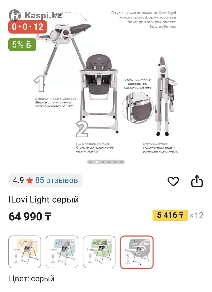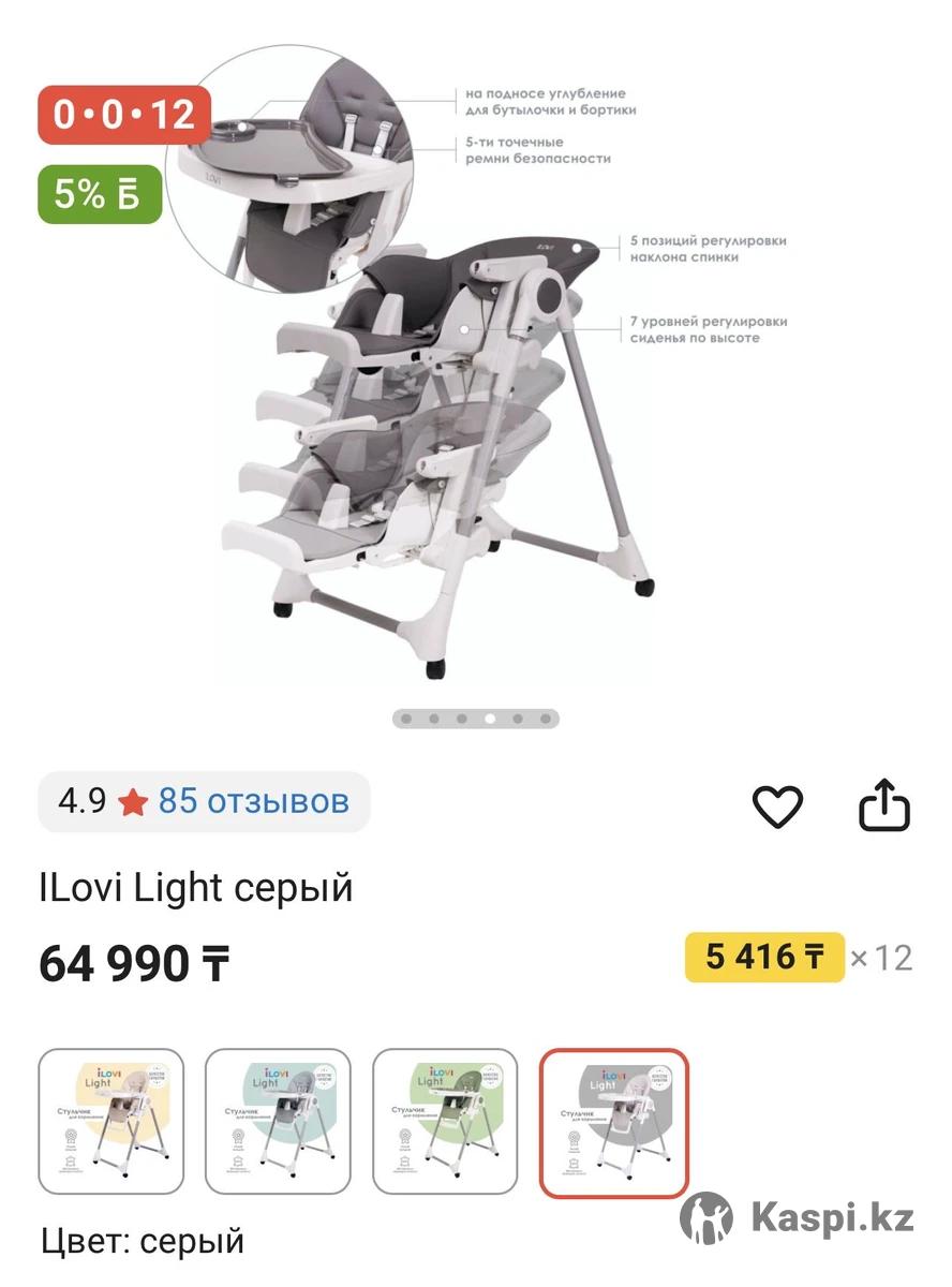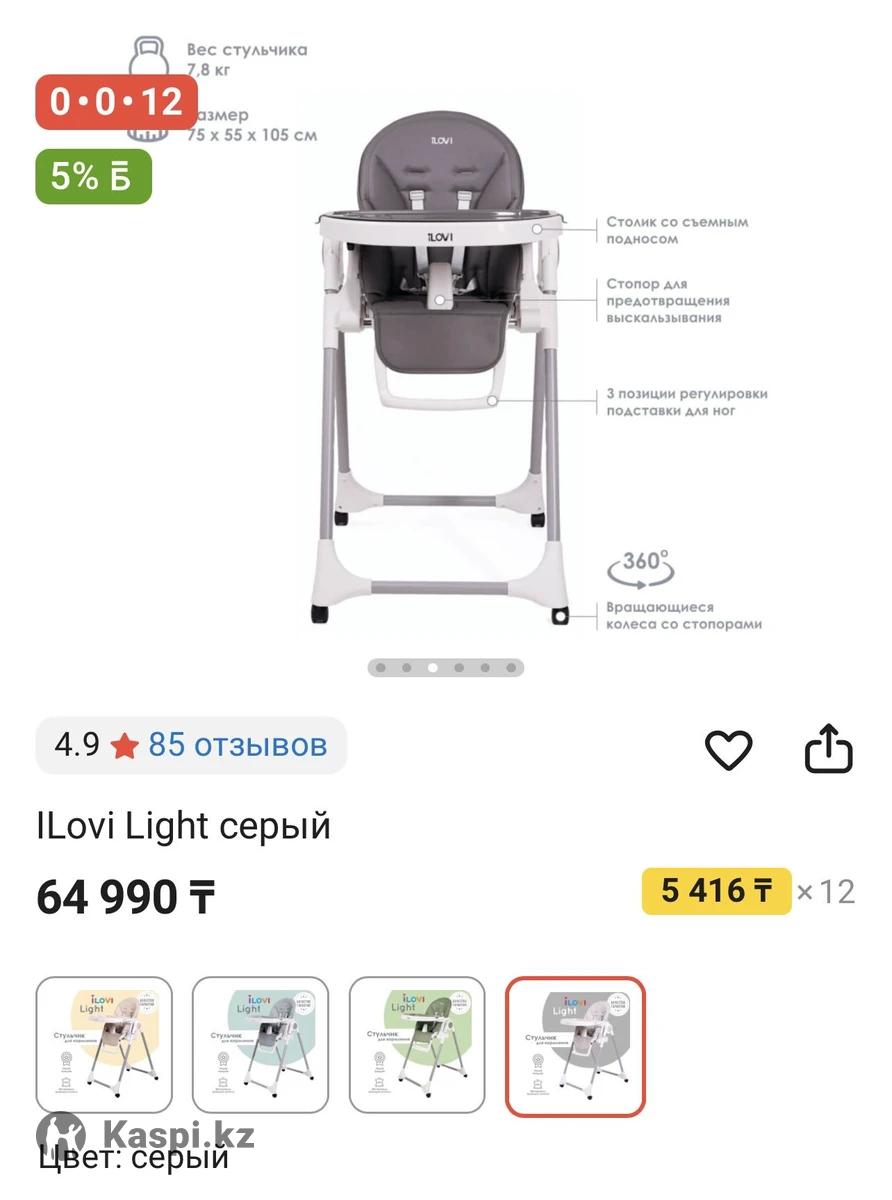 Стульчик для кормления iLovi Light. Рама из авиационного алюминия, покрытая особым матовым покрытием. Материалы: матовый пластик с тефлоновым покрытием против царапин - стульчик долго не потеряет свой первоначальный облик; чехол на сиденье из экокожи, экологичного материала. Экокожа - материал из микропористого "дышащего" полиуретана. Имеет прекрасные гигиенические свойства, не требует специального ухода, прочен, легок и износостоек. Спинка сиденья регулируется в 5 позициях до 135о 7 уровней регуляции сиденья по высоте 3 позиции для регуляции подставки для ног Большой столик со съемным подносом На подносе специальное углубление для стакана или бутылочки На сиденье между ног малыша есть пластиковый стопор, который предотвратит выскальзывание ребенка 5-ти точечные ремни безопасности Складывается одним движением Очень компактен в сложенном виде Колеса со стопорами в комплекте ❗В отличном состоянии