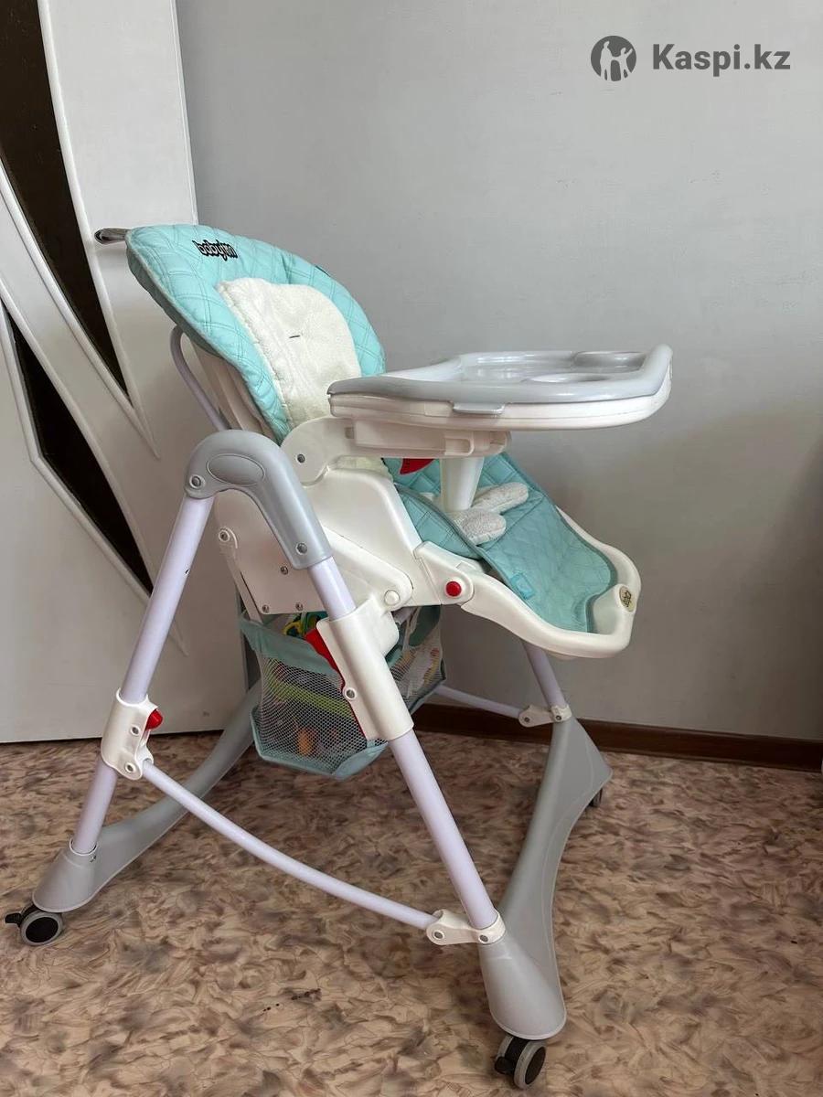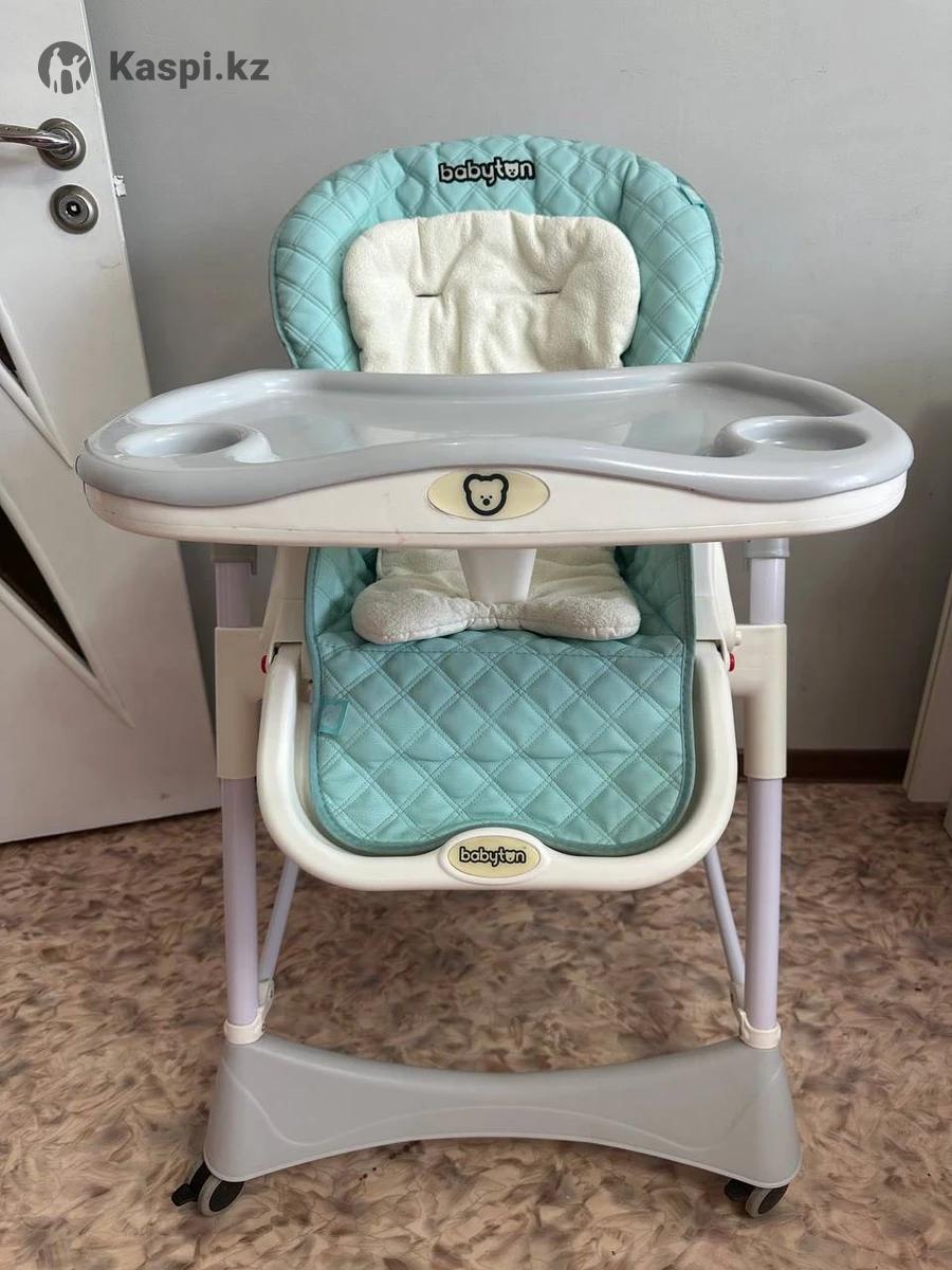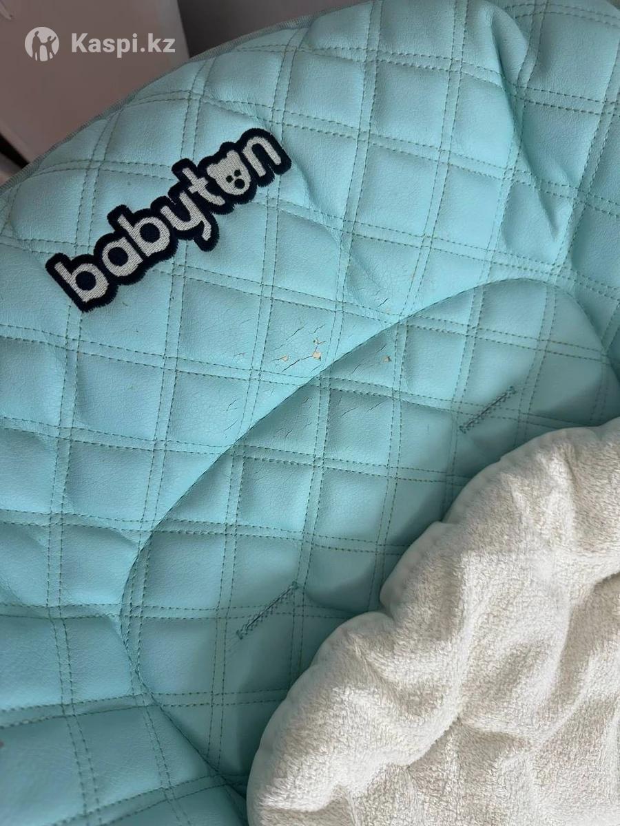 Стул для кормления Babyton. Можно использовать с рождения, как шезлон. Имеется вместительная корзина для игрушек. Немного потрескался чехол ( фото прилагаю) Но за мягким вкладышем будет совсем не заметно, и на функционал никак не влияет