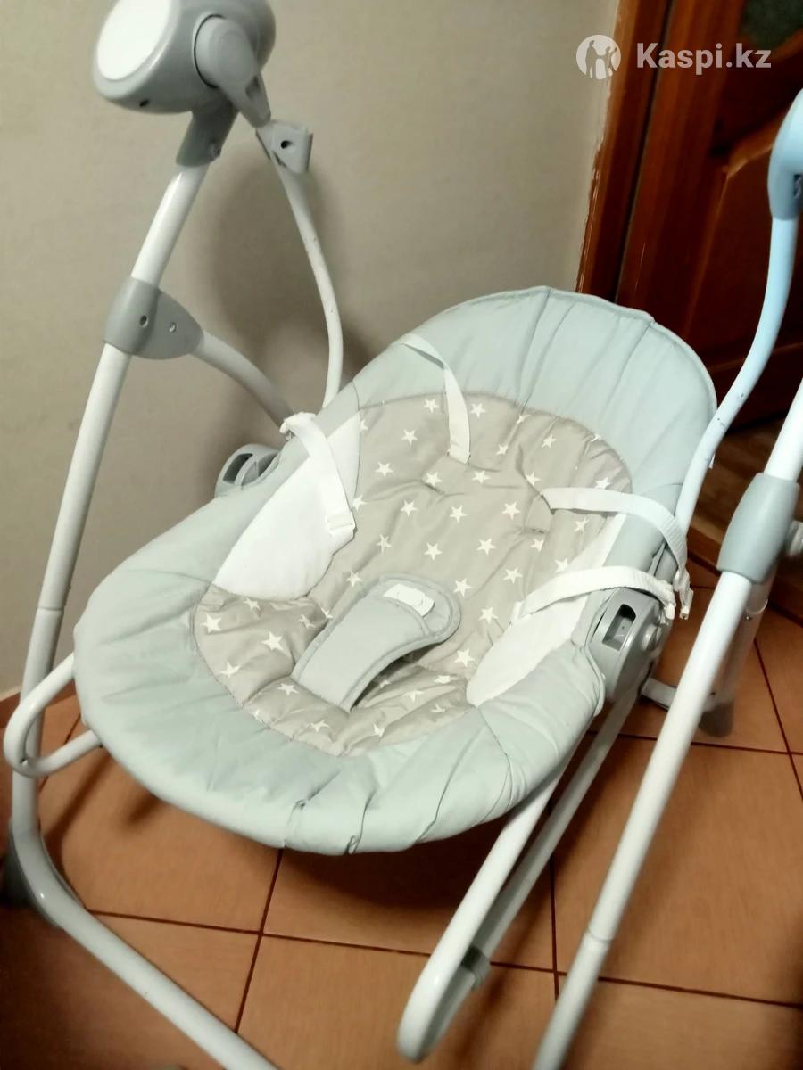 В идеальном состоянии. Все работает, музыка, белый шум, таймер, 5 уровней качания. У меня на кухне стоит, мало место занимает и ребенок под присмотром пока готовлю или чай пью. Могу привезти в любую точку города