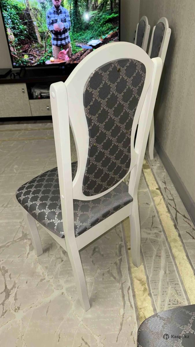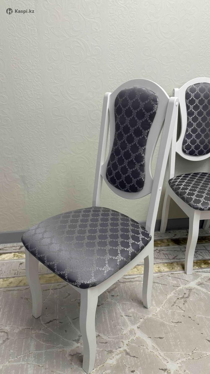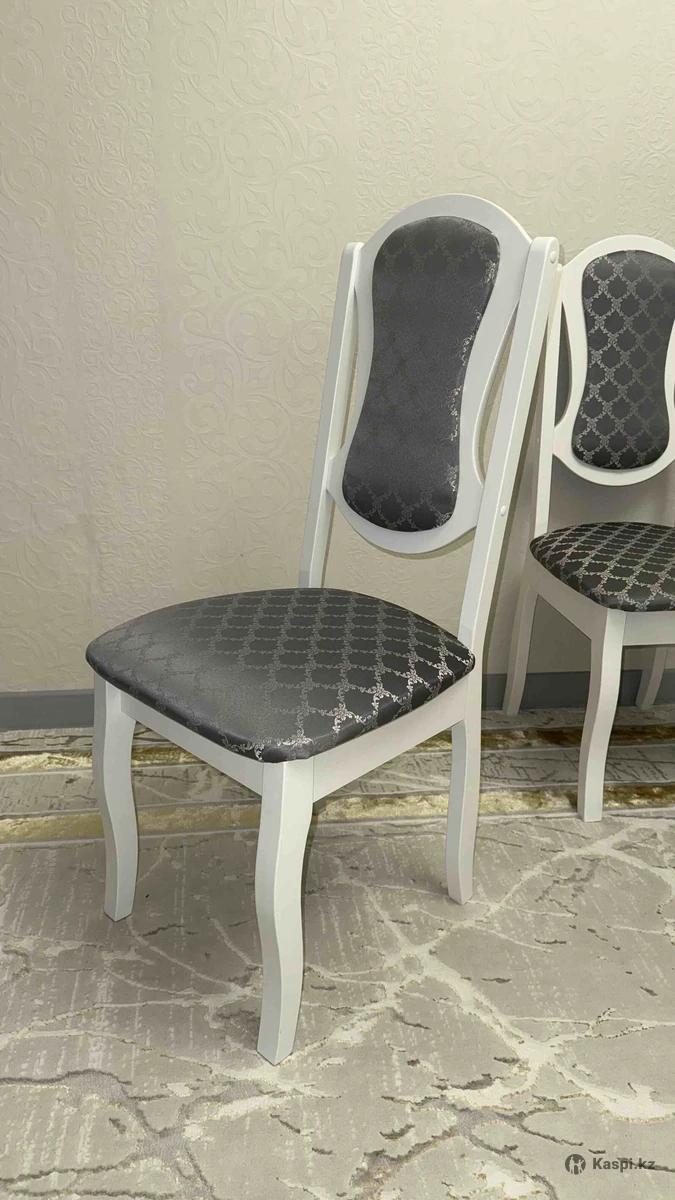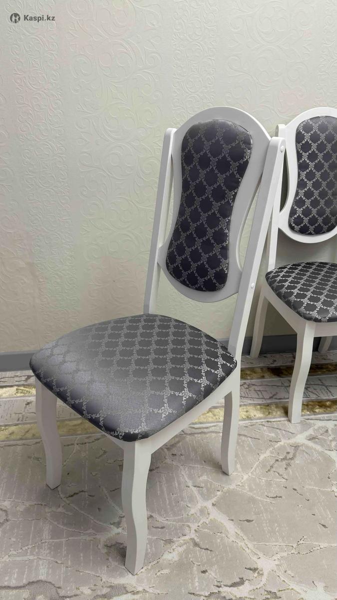 Классический обеденный стул: белый деревянный каркас, мягкое сиденье и мягкая спинка с тканевой обивкой. Подойдёт для кухни или гостиной. Состояние хорошее. 1 шт - 15 000 тг. В наличии 6 шт.
