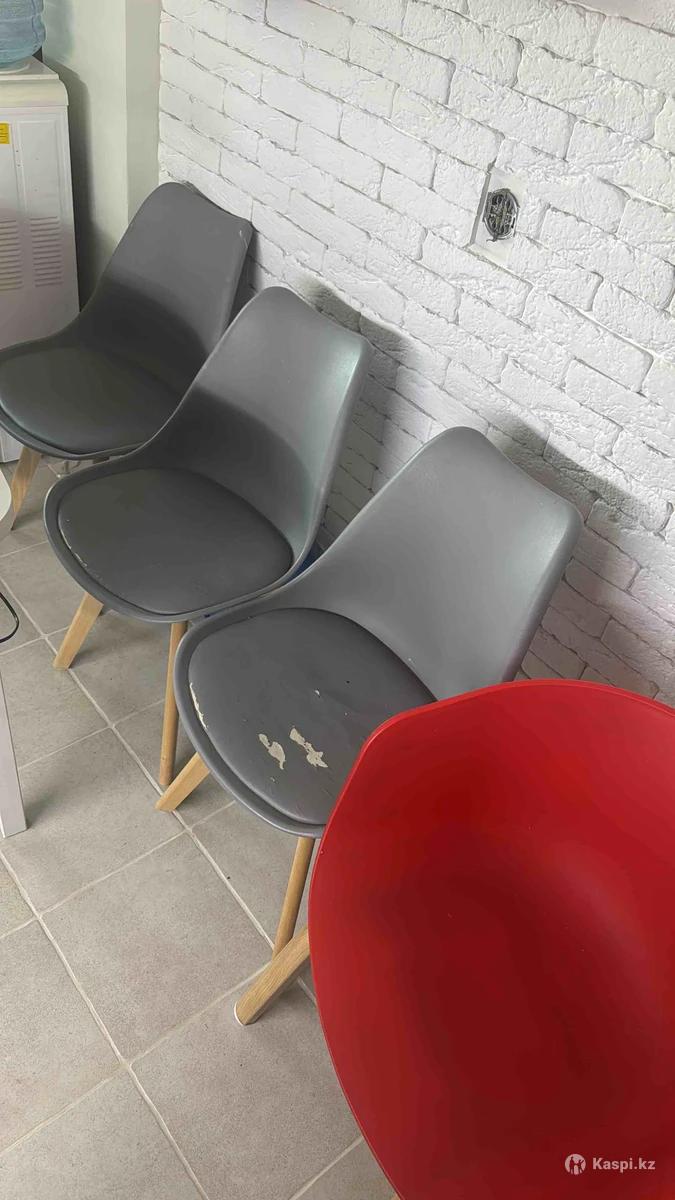 Стулья пластиковые на деревянных ножках. Сидушку можно заменить, обшить. 3 стула серых и 1 стул красный ( полностью пластик) Если поштучно серые по 2000, красный 5000 тг. Все 4 стула за 10000 тг