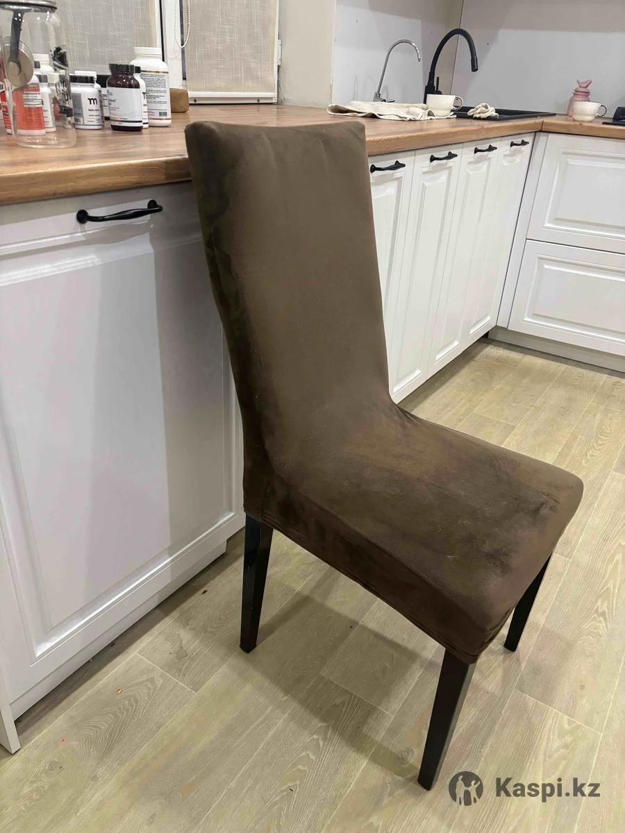 Стулья в хорошем состоянии, каркас железный, чехлы съемные. Сами стулья серого цвета, чехлы коричневые. Брали в Zeta. Итого 5 штук.