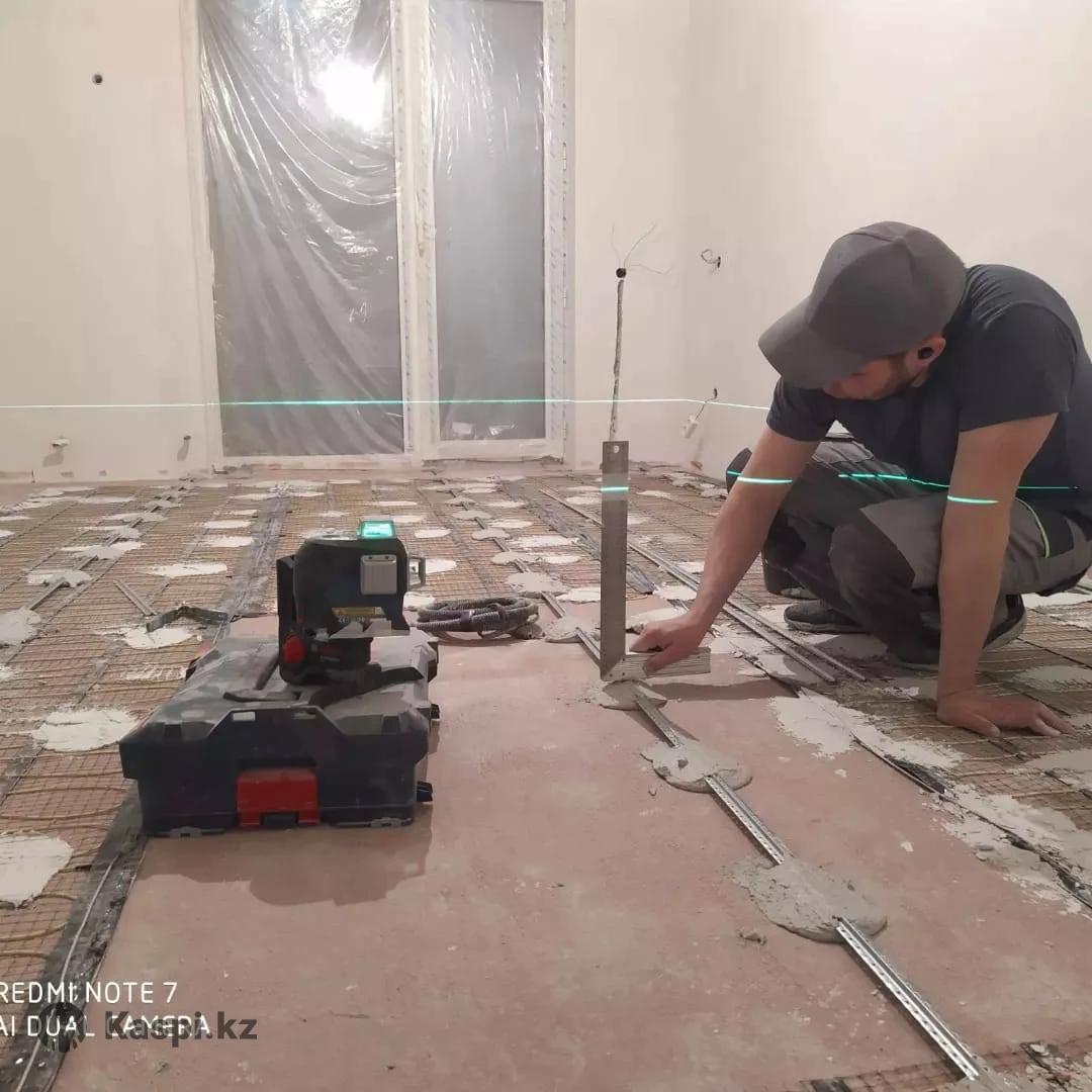 Заливаем стяжка под маяк. Идеальный точность. Используем лазерный нивелир от компании Bosch. Работаем без предоплаты. Демонтаж стяжка тоже делаем,старые убираем новые заливаем.