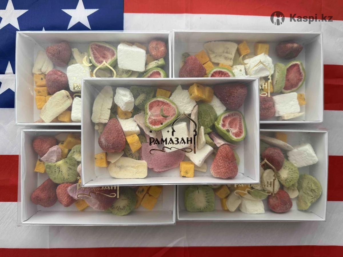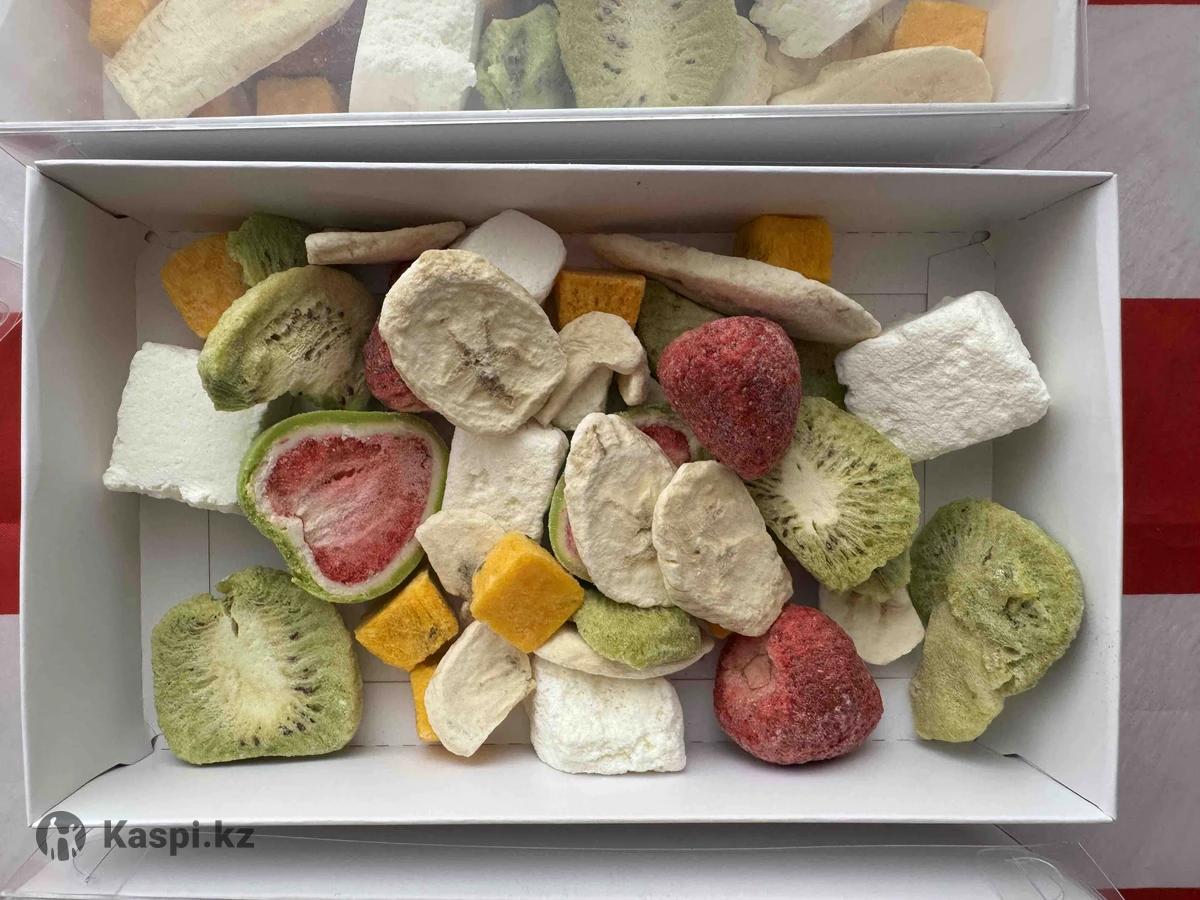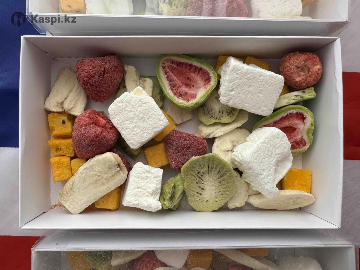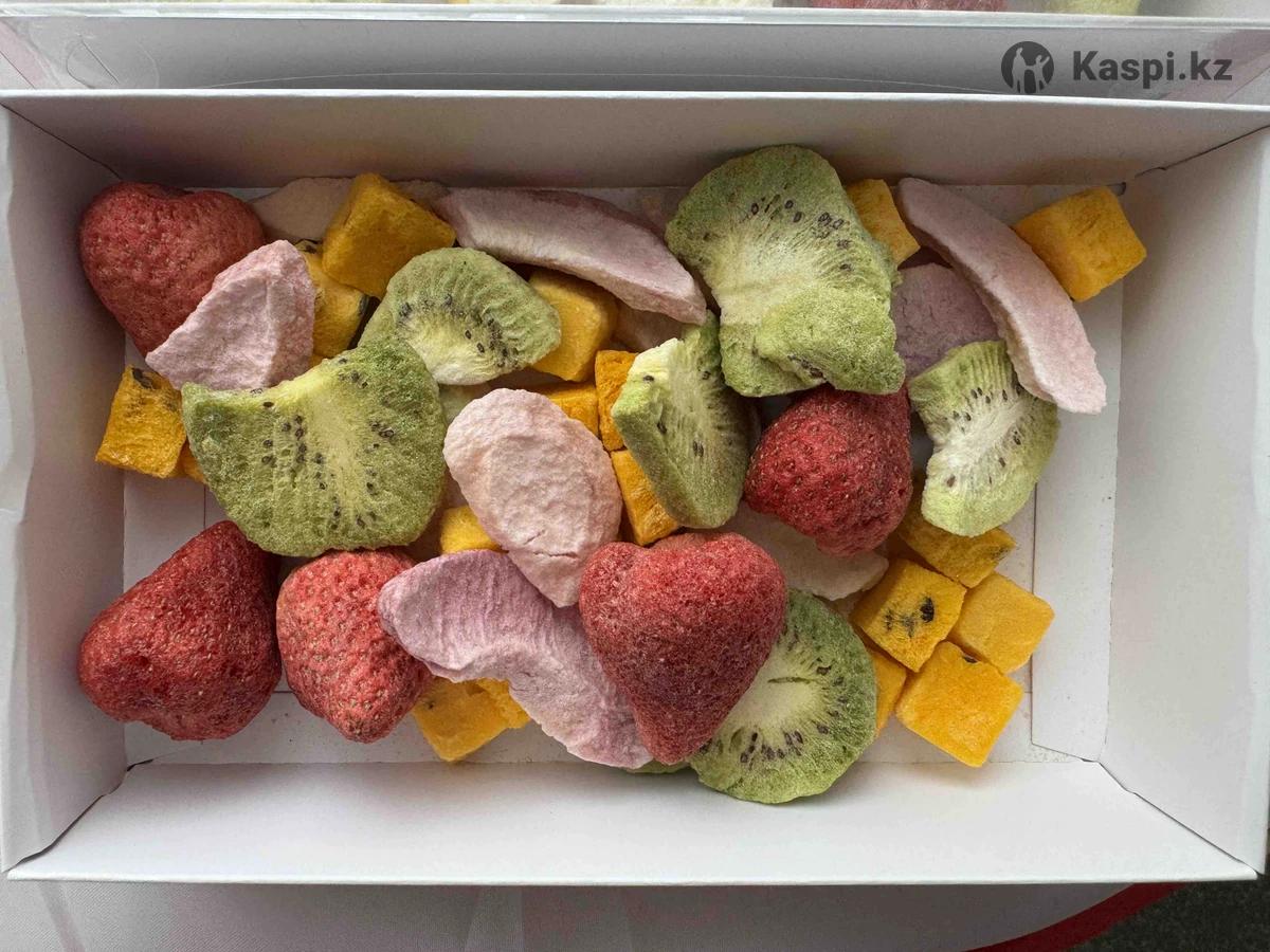 Сублимированные фрукты 100% натуральные фрукты без сахара без добавок 1 бокс 100гр 6500.7000тг Вкусы можете собрать сами 6 видов фрукты Банан клубника манго персик лайнберри киви пломбир мороженое пишите на не звоните
