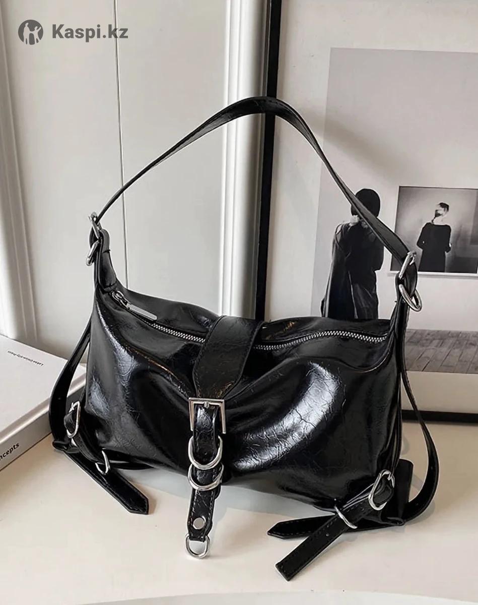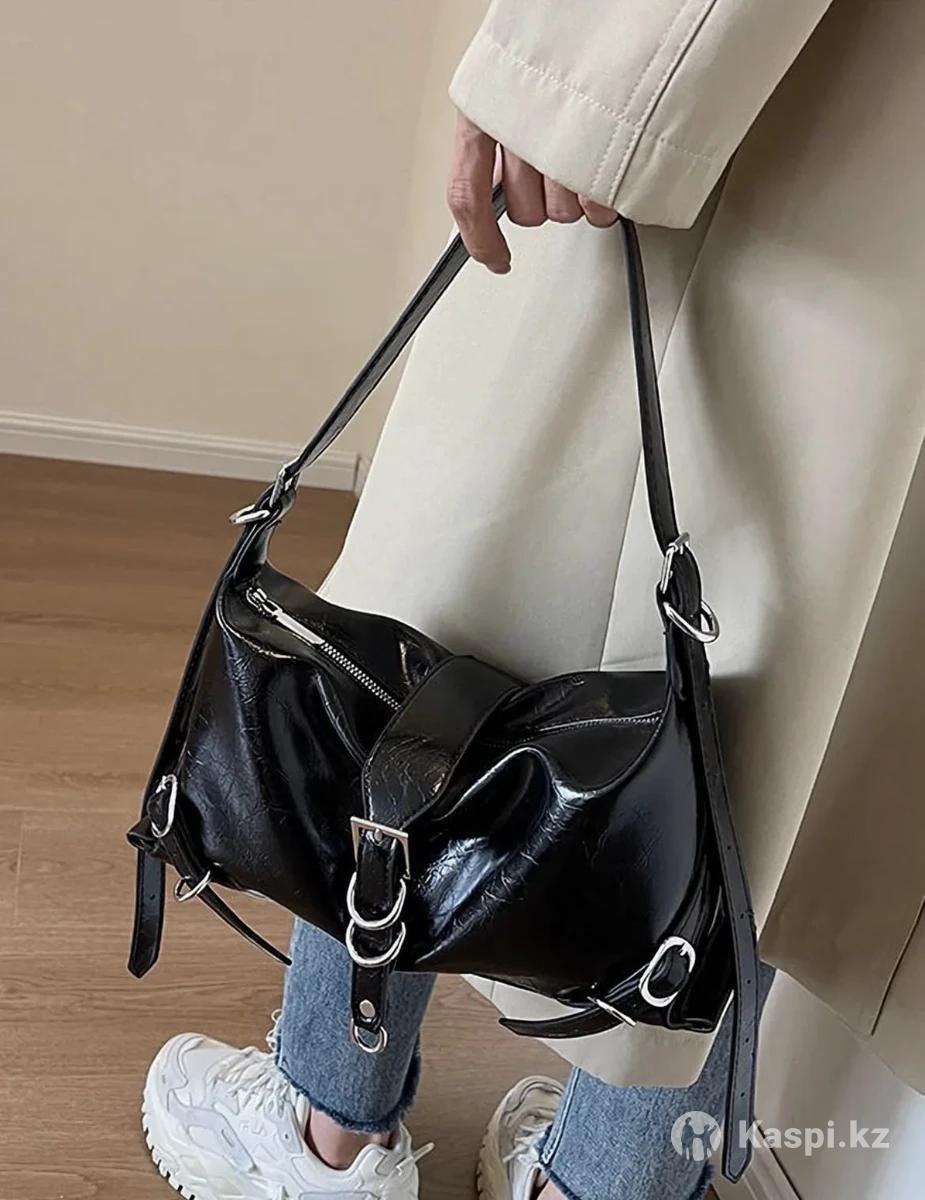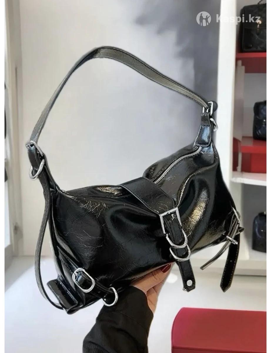 Черная женская сумка Лаковая сумка-багет через плечо Ремешок регулируемый Вместительная Не звонить, писать