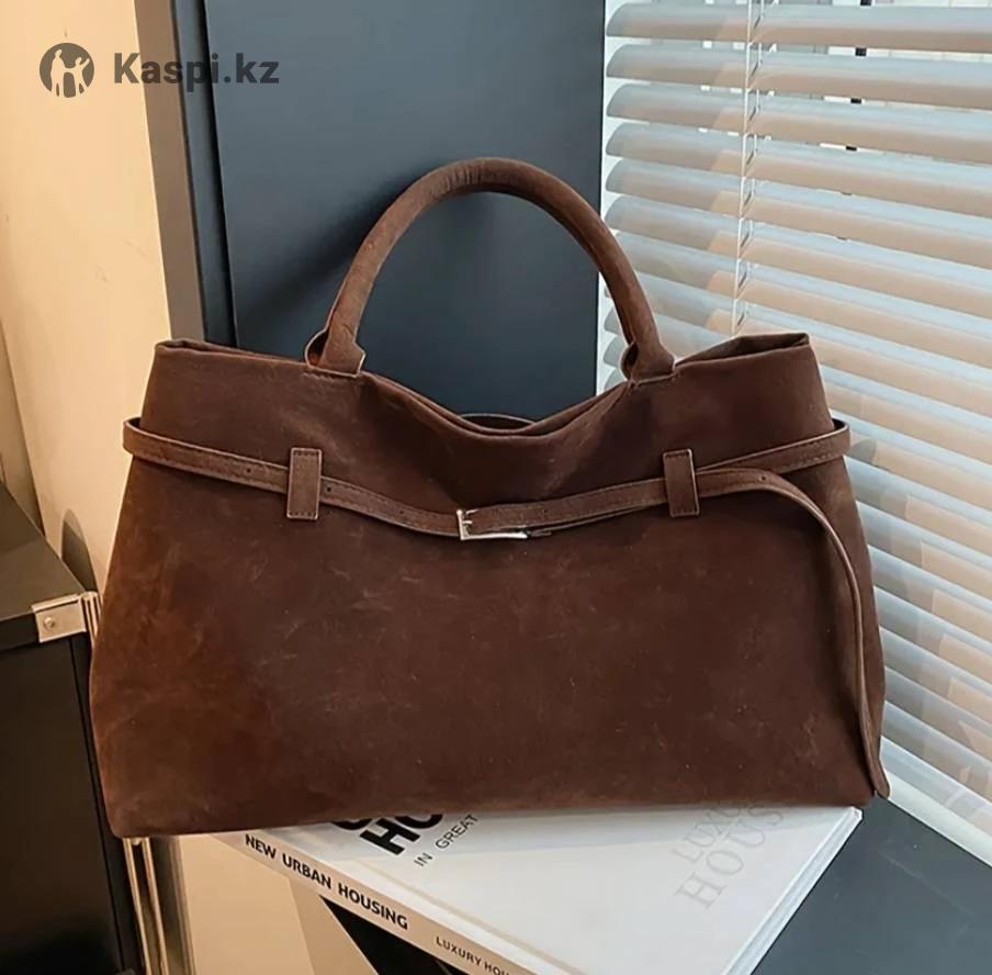 Сумка из искусственной замши коричневого цвета, большой формат А4, отличное состояние, внутри одно отделение и карман на молнии