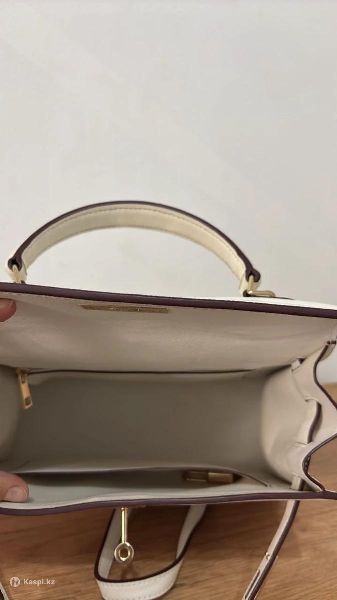 Сумка белого цвета с замком, вместительная. Есть ремешок. Можно носить как на вечер, так и на учебу