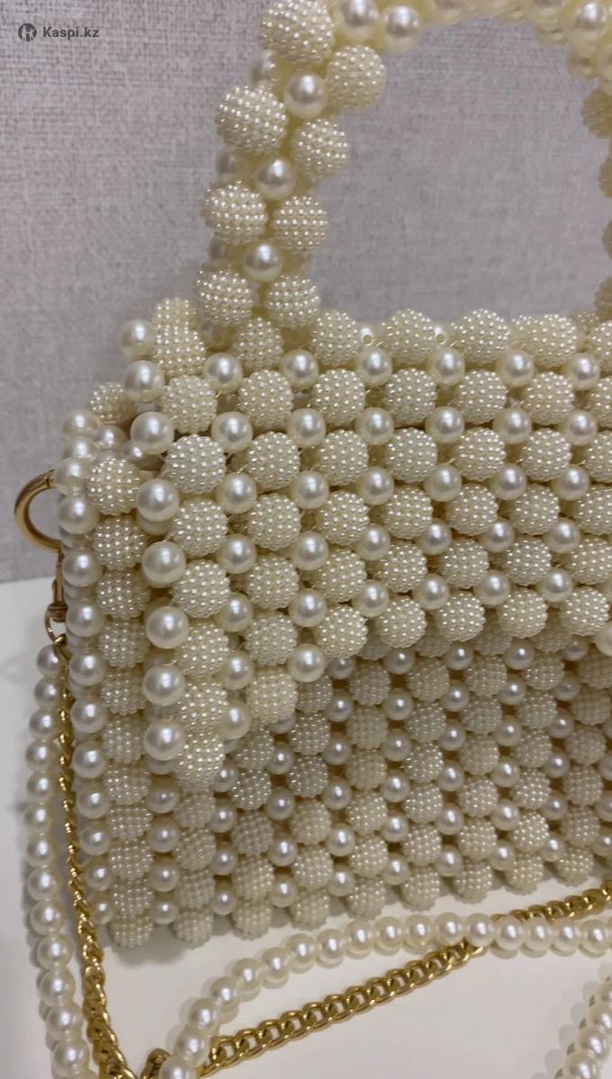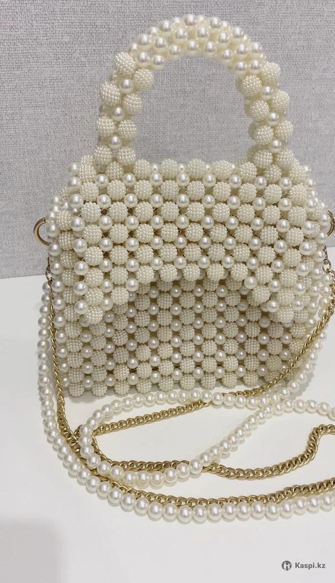 Сумка ручной работы из жемчужных бусин и бусин шамбала. Легкая, прочная, держит форму. Размер 22×18 см (27 см с ручкой). Золотая цепочка в комплекте. Элегантный аксессуар для любого образа.
