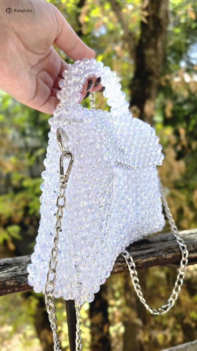 Сумка из прозрачных бусин ручной работы. Выглядит, как будто соткана из мыльных пузырей — блестит, переливается и привлекает внимание. Подойдет для фотосессий, прогулок и особых случаев.