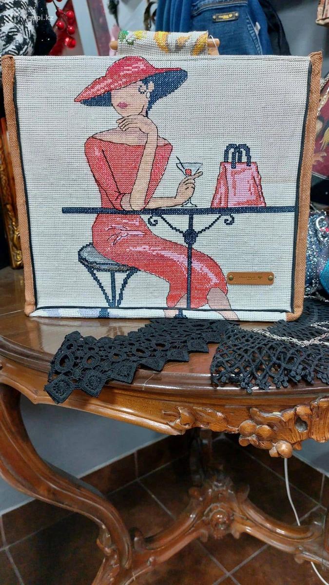 Размеры - 34/30/9 см. Жесткая. Ручная вышивка. Деревянные ручки. Внутри 4 кармана. На молнии, есть съемный ремень для носки через плечо. Handmade. Полный эксклюзив, повтора не будет.