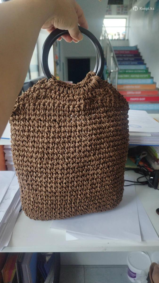 Сумка ручной работы, рафия с деревянными ручками с подкладкой, сумка приятного шоколадного цвета