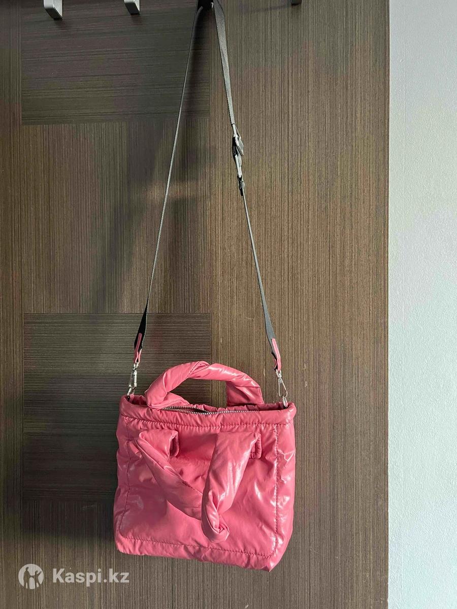 Розовая концептуальная сумка. Легкая и непромокаемая. Есть съемный длинный ремешок. На замке с карманом внутри. В идеальном состоянии.