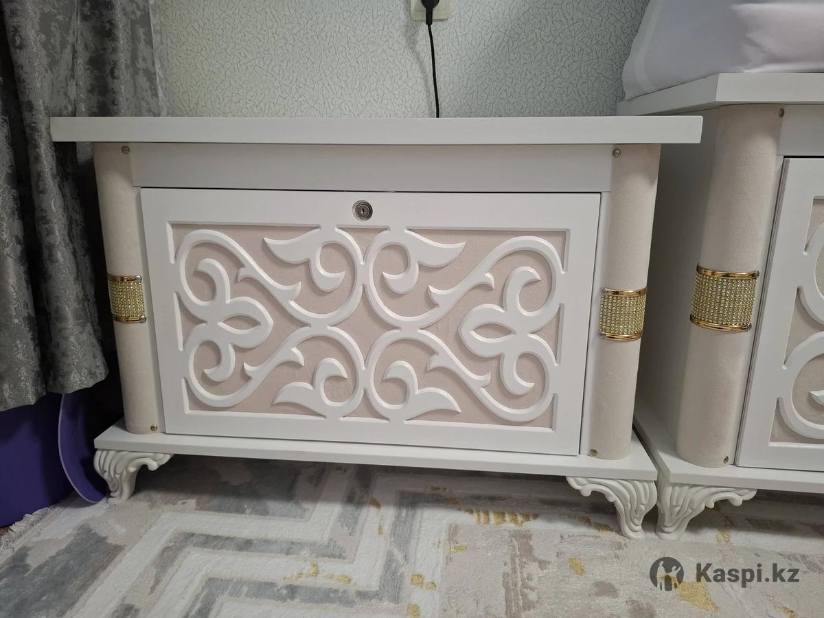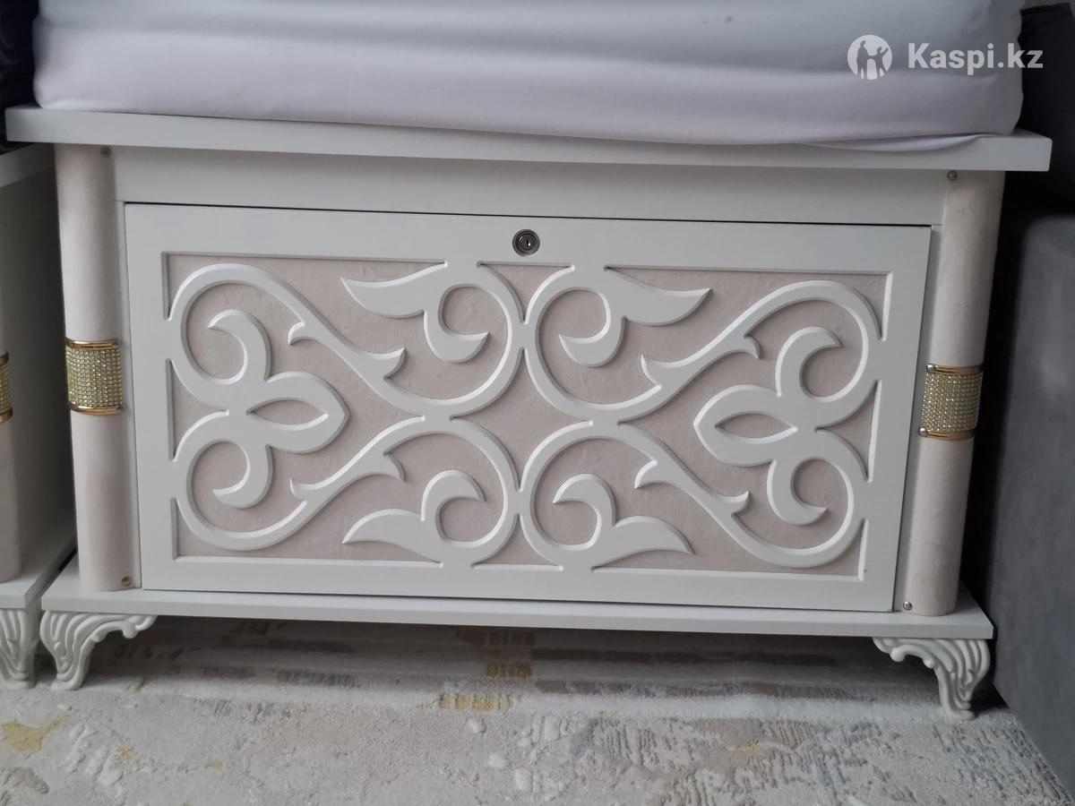 Продаются два красивых сундука (сандък) для дома или приданого (кыз жасауы). Выполнены в современном классическом стиле, цвет — белый (слоновая кость) с изящной резьбой и золотистыми декоративными вставками. Преимущества: Состояние: Отличное (как новые). Дизайн: Объемные узоры, фигурные ножки, смотрятся очень богато. Назначение: Идеально подходят для хранения корпе, постельных принадлежностей или в качестве декора в гостиную. Материал: Качественный МДФ, устойчивая конструкция.