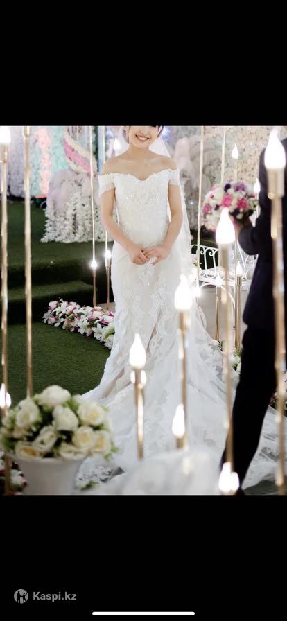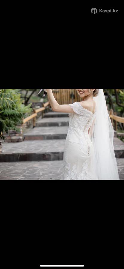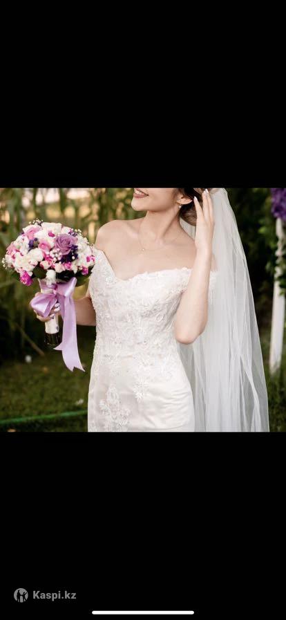 Надевала 1 раз на собственную свадьбу, размер 40-44 (регулируется за счет корсета) стоимость тг. приобретала за 400000тг.