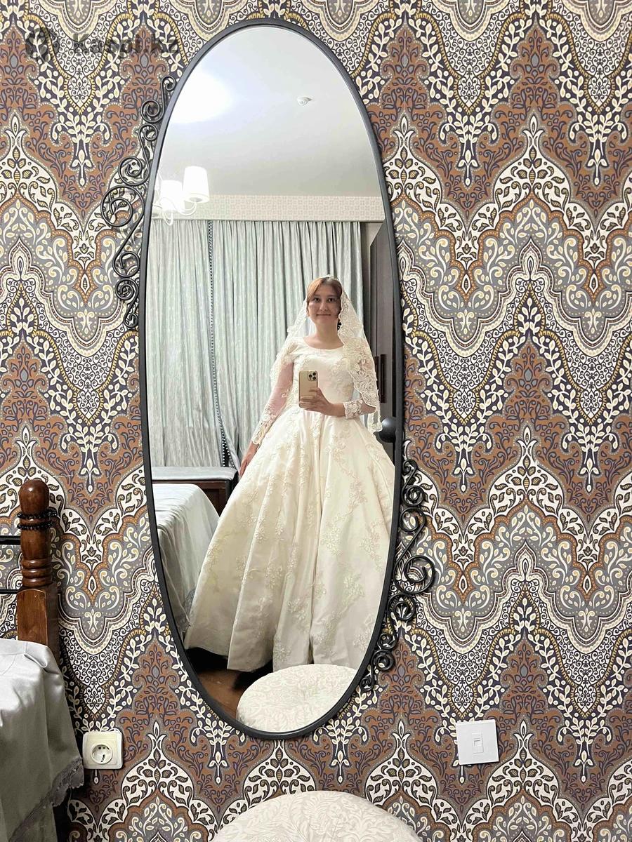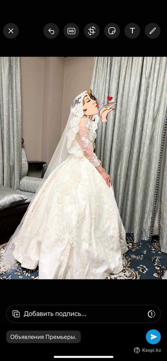 Продам свое свадебное платье очень красивое 50.000 находится на Кабанбай 11 размер подходит S, M сзади регулируется