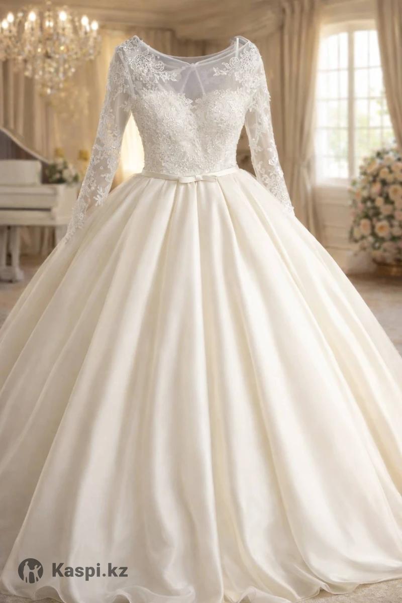 Ассаламу алейкум. Продам свадебное платье. Ткань Атлас. Цвет Айвори. Размер 42-48.Корсет регулируется. В подарок фата, кольца 5ка. Можно на прокат.Одевалось один раз.Сестрам можно одеть с водолазкой внутри. После дорогой химчистки. Отдам за 70 000тг.Покупали намного дороже.