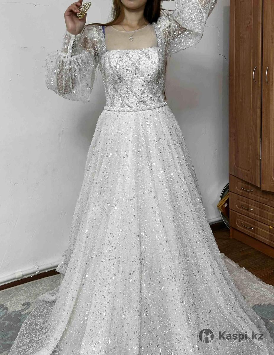 Продам свадебное платье вся с пайеткой С шлейфом и корсетом Цена:50тыс тенге