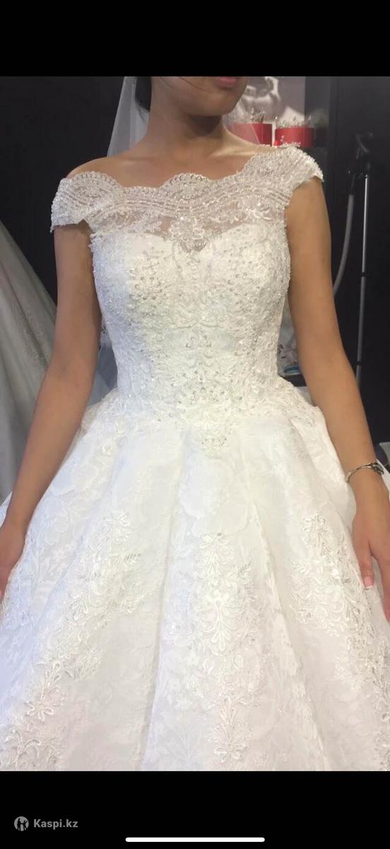 Продаю пышное свадебное платье со шлейфом, купленное в свадебном салоне Эмилия Спроса в г. Астана! Размер М, 46-48, затягивается. После химчистки.