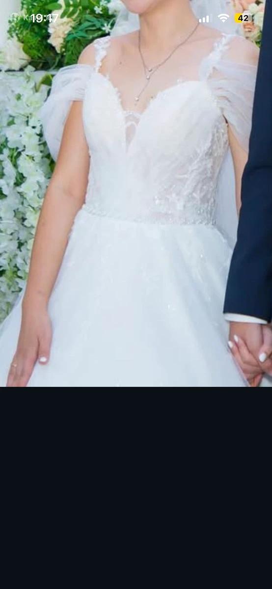 ✨ Роскошное свадебное платье в идеальном состоянии ✨ Продаю своё свадебное платье. Надевала всего один раз — на собственную свадьбу. Платье очень нежное, воздушное и эффектное, смотрится дорого и элегантно. Фасон красиво подчёркивает талию, верх аккуратно расшит, юбка пышная, лёгкая и изящно струится. Создаёт по-настоящему королевский образ 🤍 📏 Размер: 44–48 (за счёт фасона отлично садится по фигуре). Состояние отличное. Требуется только химчистка. 💎 Цена: 100 000 тг (реальному покупателю возможен разумный торг). Пишите в личные сообщения — с удовольствием отвечу на вопросы и отправлю дополнительные фото/видео. Платье ждёт свою счастливую невесту ✨