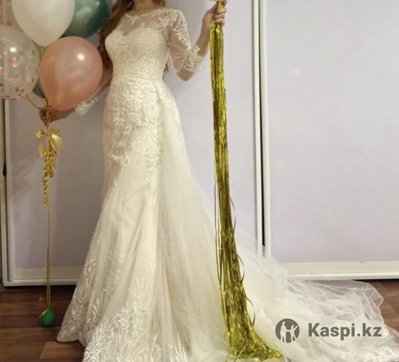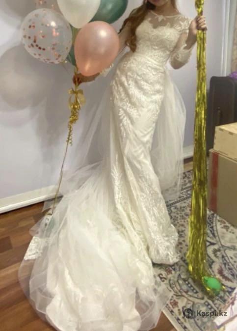 Продам свадебное платье силуэт «русалочка». Сама одевала 1 раз. Корсет регулируется, есть красивый шлейф.