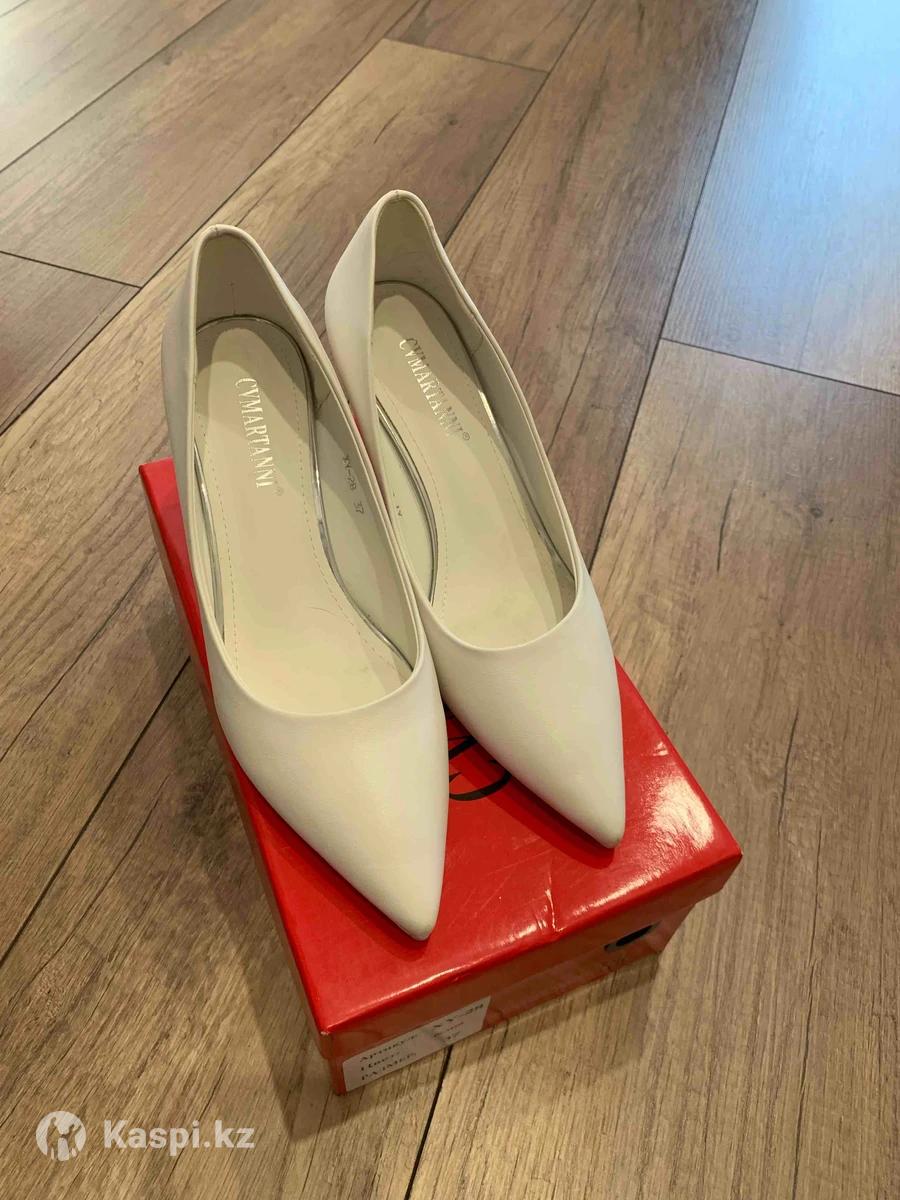 Продаю туфли чисто белого цвета, очень мягкие и удобные, каблук не высокий, оформлен стразами, что очень украшает туфли и ваш образ. Обувались 1 раз на свадьбу, никаких повреждений нет