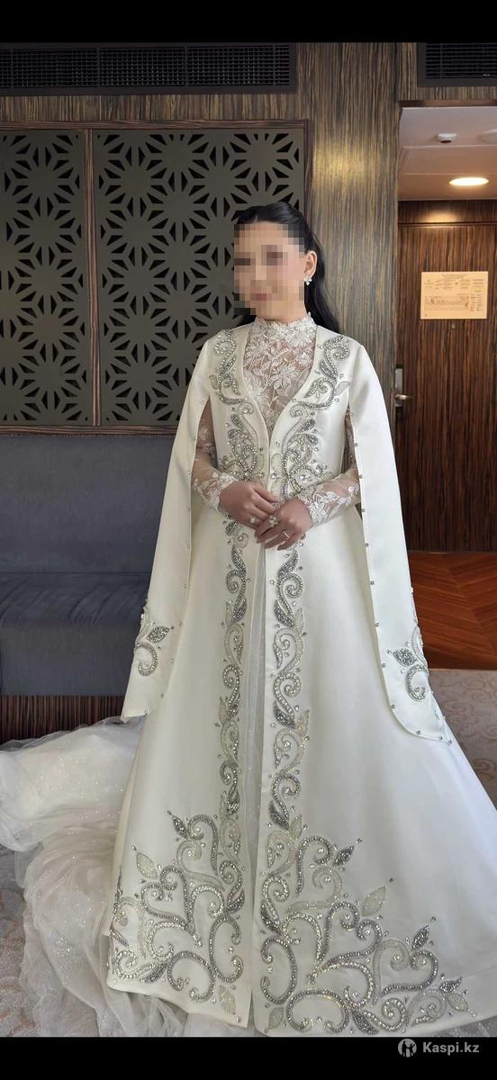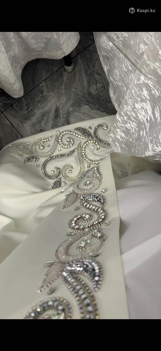 Продам шикарный свадебный камзол заказанный из Ташкента! Стоил около 1.000.000 тенге. Ручная работа, каждый камушек тщательно был прошит! Ткань была плотная и дорогая! Переливается камзол очень роскошно 🥺 Камзол не легкий, потому что ткани и камни были дорогими и качественными! Я надевала его только на 15 минут на беташар, даже очень жаль, что не успела поносить как следует. (На узату у меня было другое платье) В комплекте еще идет платье под низ. Продам за 300.000 тенге. Торг уместен.