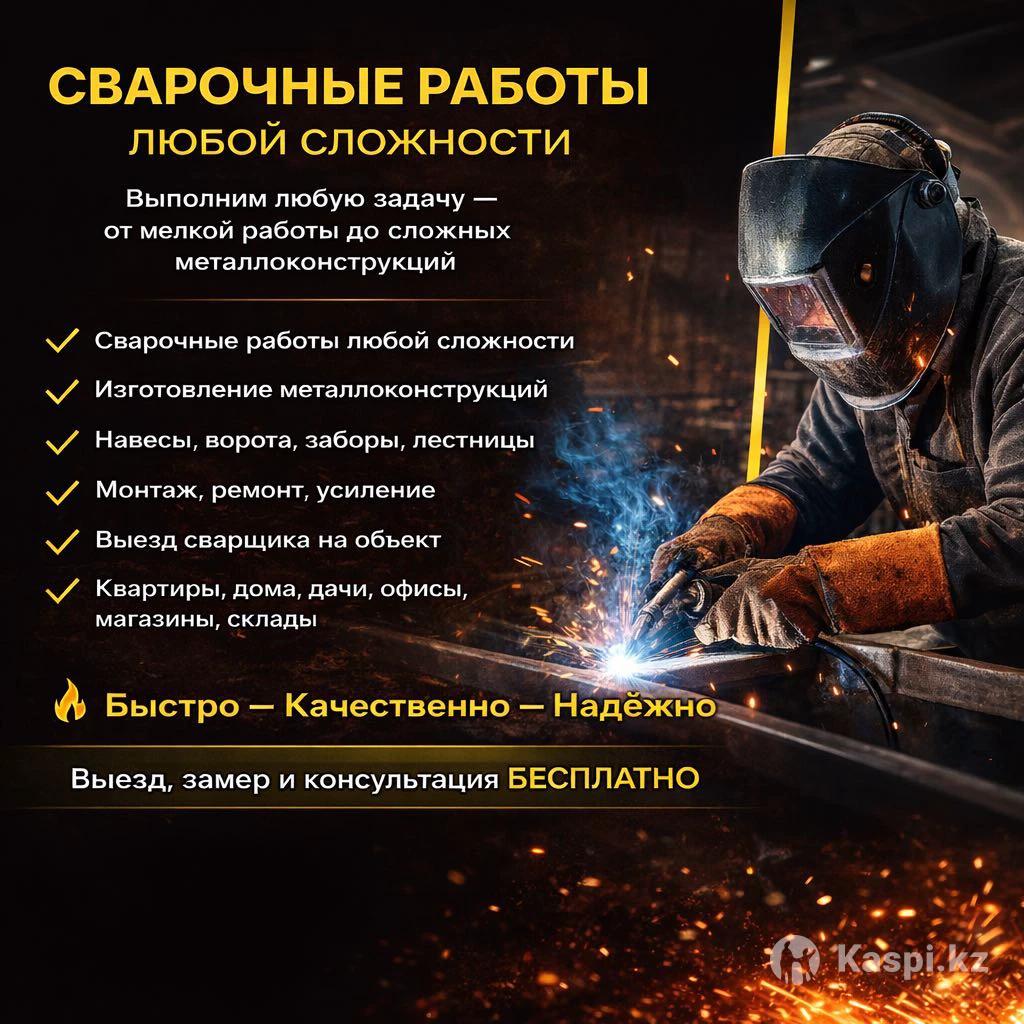 🔧 СВАРОЧНЫЕ РАБОТЫ ЛЮБОЙ СЛОЖНОСТИ Выполним быстро, аккуратно и надёжно. Работаем с частными и коммерческими объектами. Что делаем: ✔ Металлоконструкции под ключ ✔ Навесы, ворота, заборы, лестницы ✔ Усиление и ремонт конструкций ✔ Сварка труб и каркасов ✔ Монтаж и демонтаж металлоизделий ✔ Выезд сварщика на объект Поченьу выбирают нас: ✅ Качественные швы и точная геометрия ✅ Работаем по вашим размерам и чертежам ✅ Соблюдаем сроки ✅ Чистота и порядок после работы 🔥 Быстро — Качественно — Надёжно 📍 Выезд и консультация бесплатно