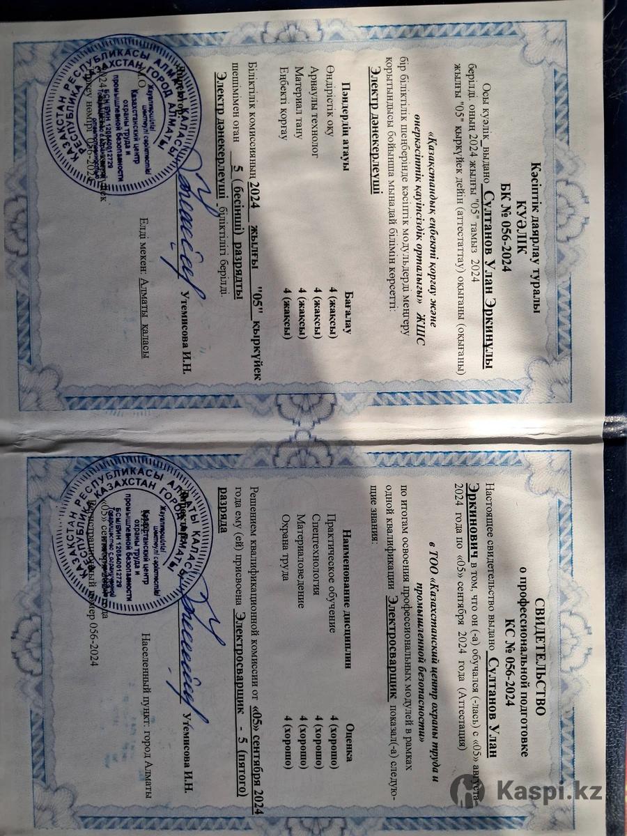 Сварщик электродуговой сварке ,полуавтомат , выезд мелкий сварачные работы , демонтаж окон дверей перегародак, выезд желательно Теректы Калкаман Иргели Кемертога