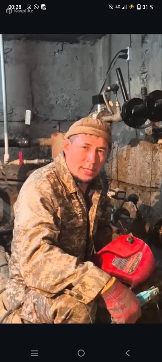 Сварщик с 20 летним стажем. Большой опыт. Системное отопление любой сложности, установка и замена котлов, утепление полов. Сантехник. Все что связано с водой. Душевые, раковины, унитаз установка и замена. Насосы установка, замена, ремонт. ИП. Работаем на качество. Есть рассрочка с Каспий банк. Очень порядочные работники. Без вредных привычек. Работа срок в срок. Гарантия обслуживания
