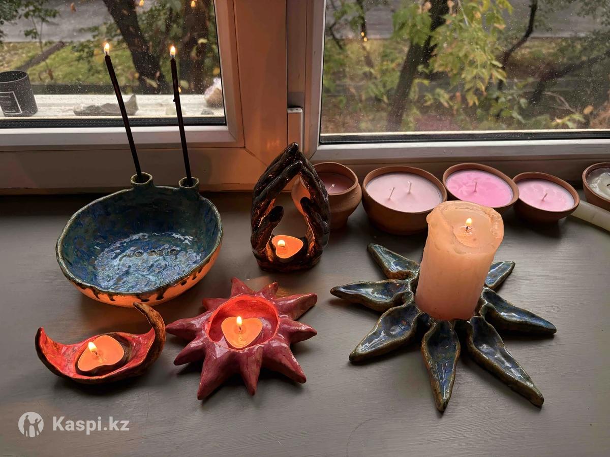 свечи в глине, ручная работа, сделано с любовью