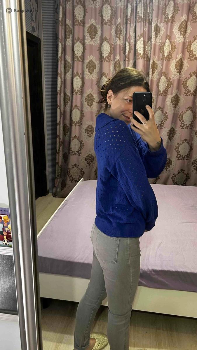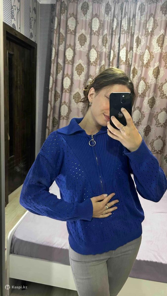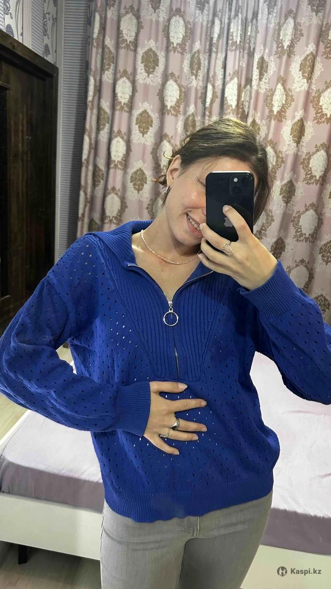 Синий свитер, производство Турция. Можно носить спущенным на одно плечо, будет красиво женственно. Дышащий материал, в сетку.