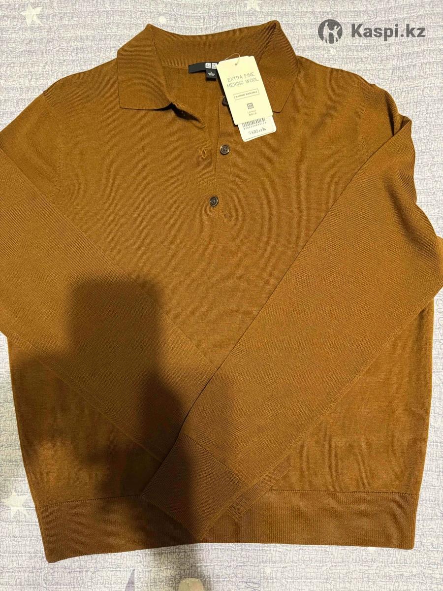 Женский свитер поло выполнен из 100% мериносовой шерсти. Материал мягкий и приятный на ощупь, цвет кэмел. Оригинал Uniqlo все бирки на месте. Размер L , немного маломерит подойдет на M.