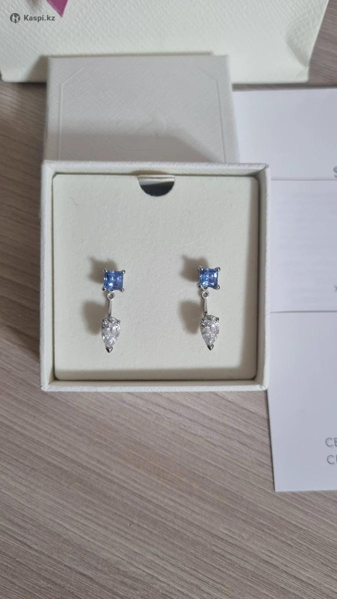Mesmera серьги-джекеты, Голубые камни, Родиевое покрытие. Размер: 1.9 x 0.6 cm. Серьги-трансформеры, можно носить в двух вариантах. 100% оригинал со всеми документами. Новое в упаковке. В магазине сейчас стоит 70.000. Отдаю за пол цены 30.000