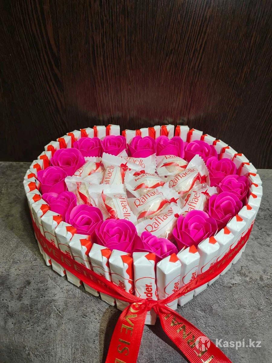 Продам съедобный букет. Конфеты Raffaello, киндер шоколад и мыльные розы