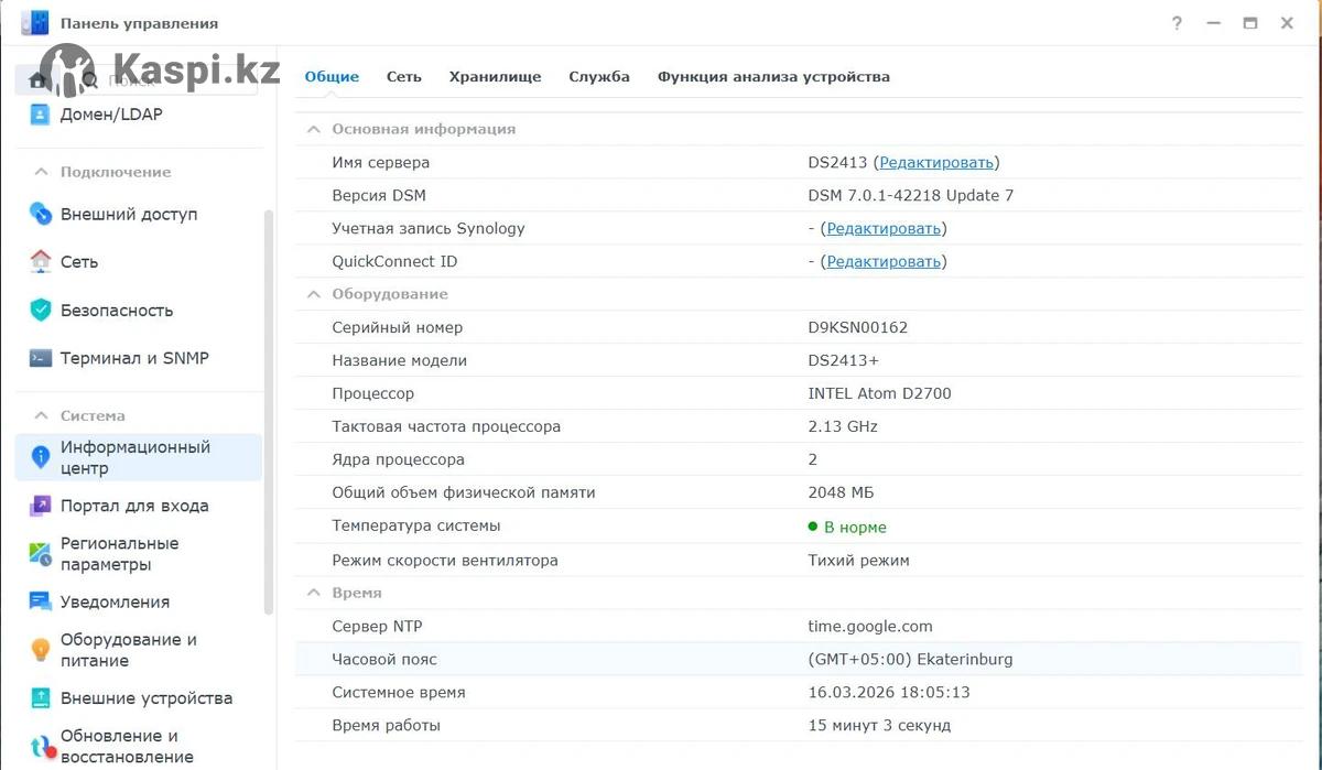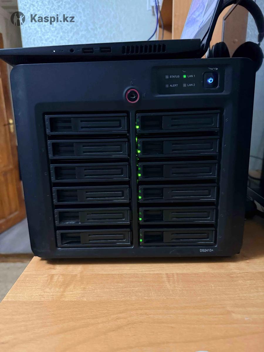 Продается сетевое хранилище Synology DS2413+. Надежный NAS сервер для хранения данных дома или в офисе. Отлично подходит для резервного копирования, системы видеонаблюдения, файлового сервера и хранения больших объемов информации. Основные характеристики 12 отсеков для HDD или SSD 2.5 и 3.5 Процессор Intel Atom 2.13 GHz 2 ядра Оперативная память 2 GB с возможностью расширения до 4 GB 2 Gigabit LAN порта для подключения к сети Поддержка RAID 0 1 5 6 10 JBOD и SHR Горячая замена дисков без выключения Порты подключения 2 USB 3.0 и 4 USB 2.0 Возможность расширения системы хранения Подойдет для Систем видеонаблюдения Хранения больших объемов данных Резервного копирования Домашнего или офисного сервера Комплектация NAS устройство Кабель питания Состояние хорошее. Можно проверить при покупке.