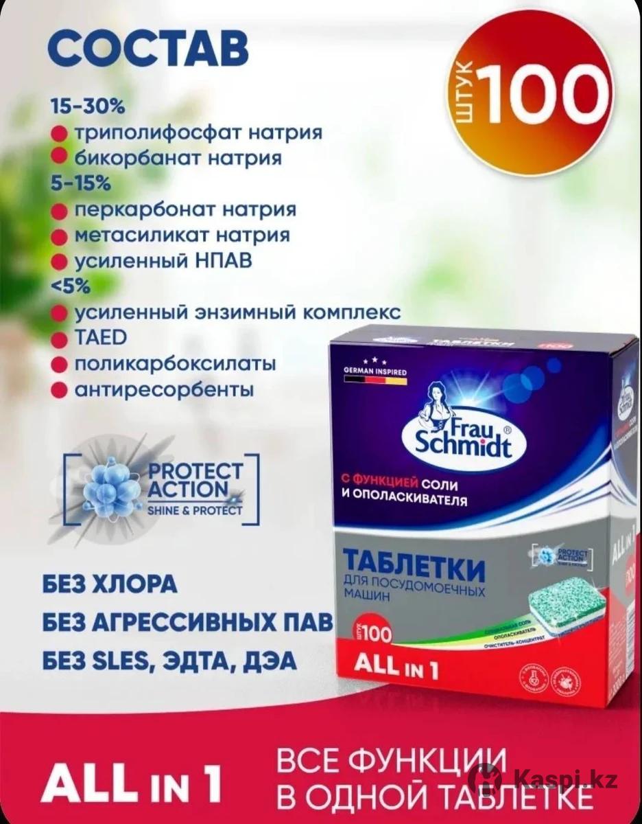 Таблетки Frau Schmidt для посудомоечных машин 2000 г 100 шт. Новая не вскрытая упаковка. 8000тг. Без торга. Район Рыскулова Емцова или Орбита 1.
