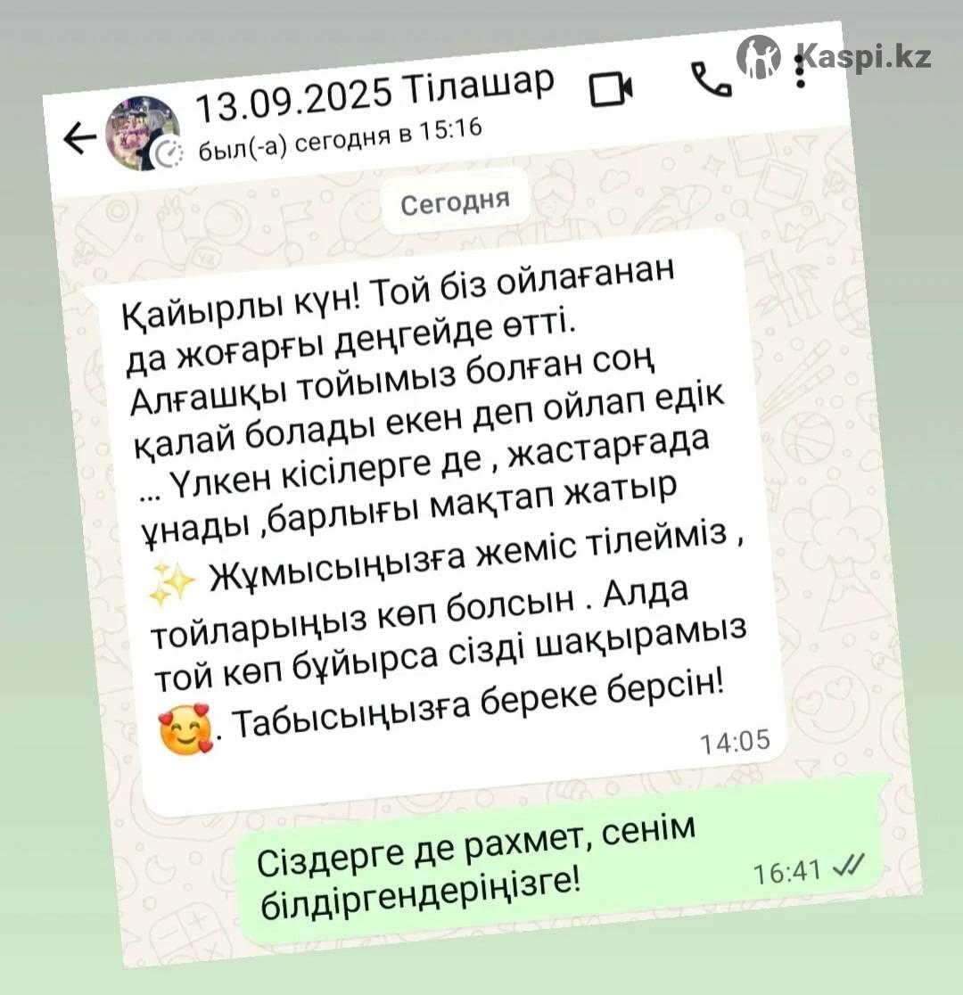 Үйлену той, Қыз Ұзату, Құдалық, Сырға салу, Тұсау кесер, Мерей той Тамада Әнші Бишілер Видео оператор Шоу программы