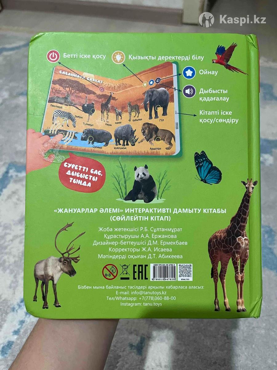 Продам книжку Tanu о животных на казазхском языке. На первой странице немного есть скотч, в целом состояние хорошее, все страницы работают. Фото всех страниц не вместились в объявление. Зарядки хватает надолго