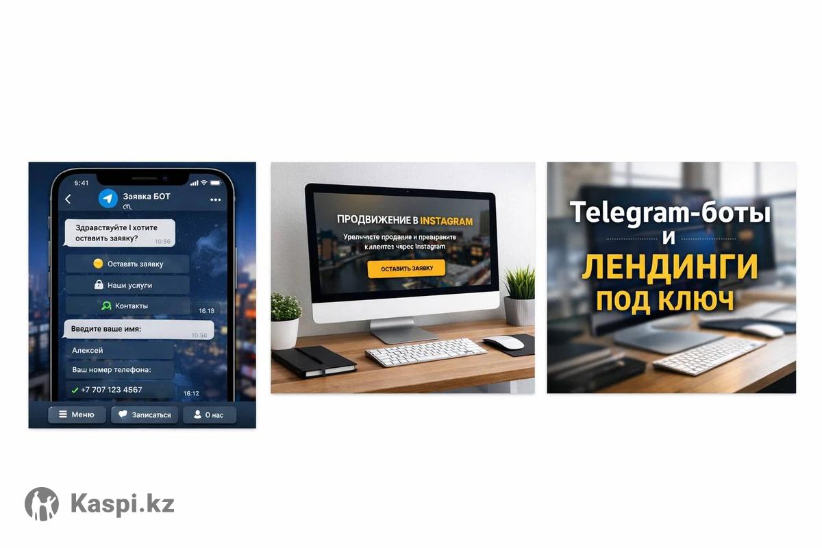 Помогаю бизнесу получать больше заявок через и сайты. Создаю ботов и лендинги, которые: ✔️ принимают заказы автоматически ✔️ записывают клиентов 24/7 ✔️ повышают продажи ✔️ экономят ваше время Работа под ключ — от идеи до запуска. Быстро, понятно, без лишних сложностей. Цена от 15.000 тг Напишите в чат — обсудим ваш проект.