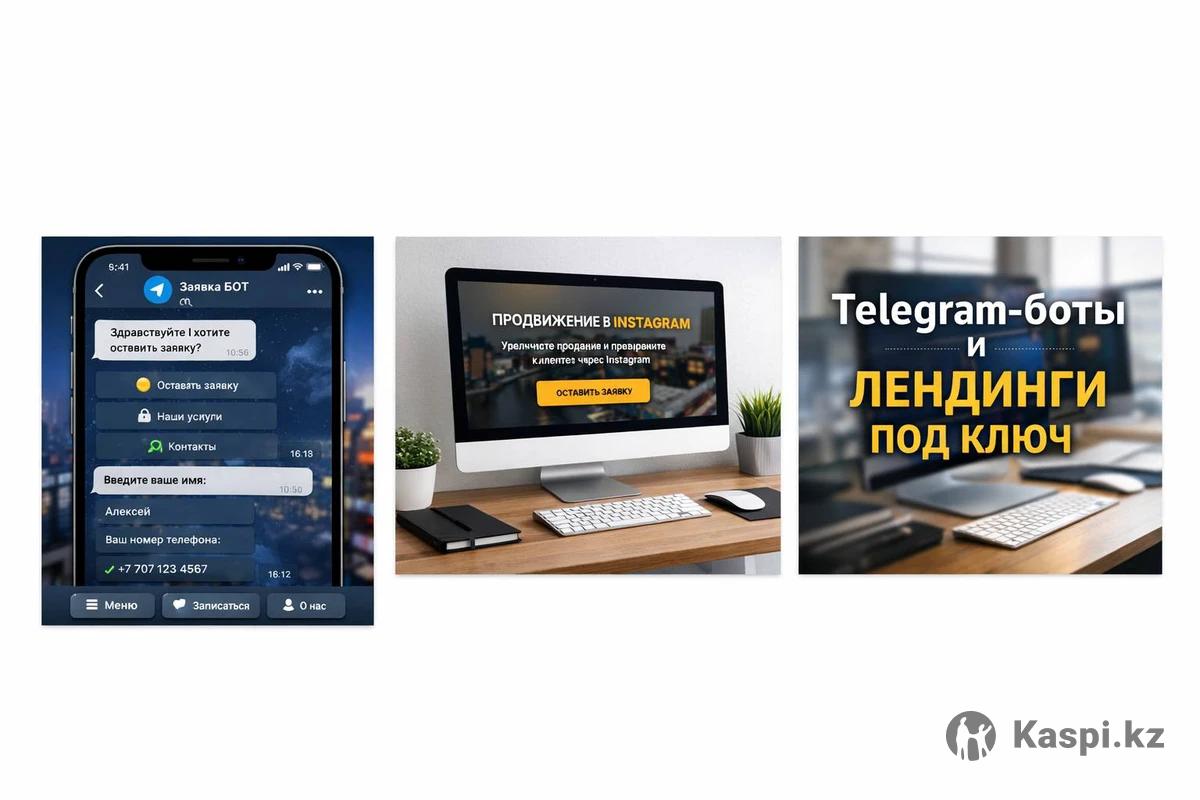 Помогаю бизнесу получать больше заявок через и сайты. Создаю ботов и лендинги, которые: ✔️ принимают заказы автоматически ✔️ записывают клиентов 24/7 ✔️ повышают продажи ✔️ экономят ваше время Работа под ключ — от идеи до запуска. Быстро, понятно, без лишних сложностей. Цена от 15.000 тг Напишите в чат — обсудим ваш проект.