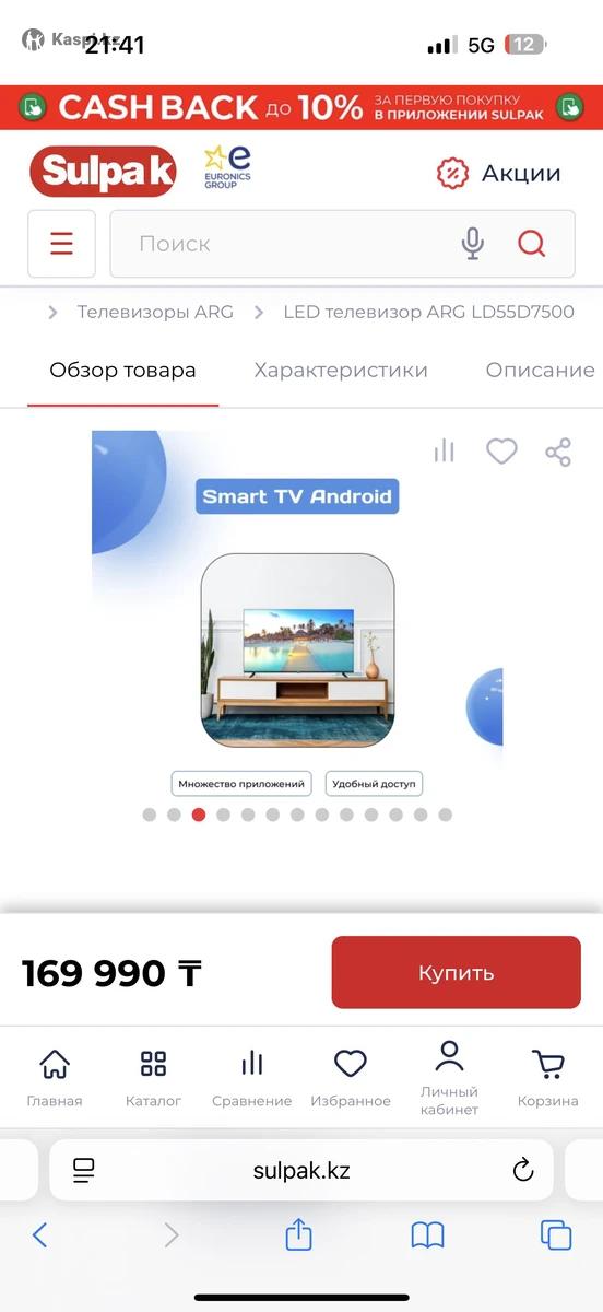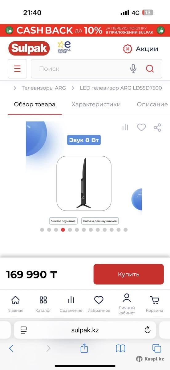 Телевизор ARG LD55D7500 140 см. Новый почти!! Смотрели 2-3 раза стоит как новый! На каспи стоит 170,000 тг продаем дешевле! Бесплатная доставка