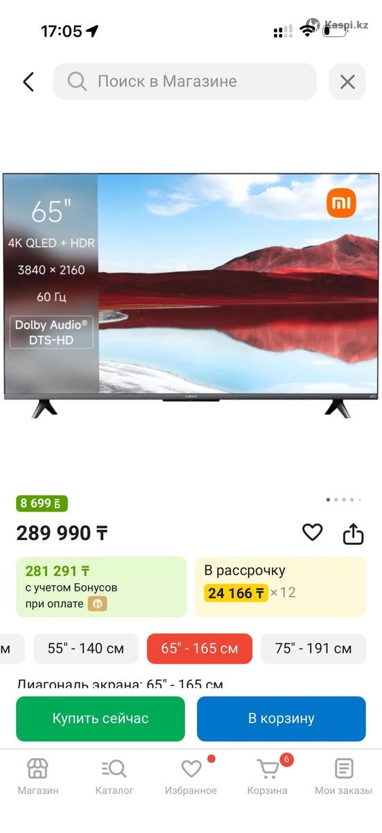 Телевизор Xiaomi A 2025 L65MA-ARU 165 см черный Диагональ экрана- 65”-165 см. Есть торг