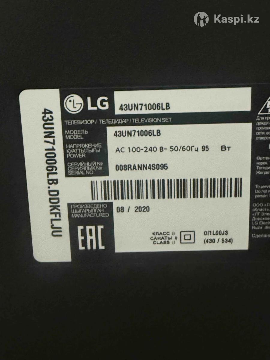 Продается телевизор LG модель 43UN71006LB,в связи с переездом. Диагональ экрана 43″ - 109,2 см Разрешение 3840x2160 (4K UHD) Технология LED Smart TV Да Цвет Черный