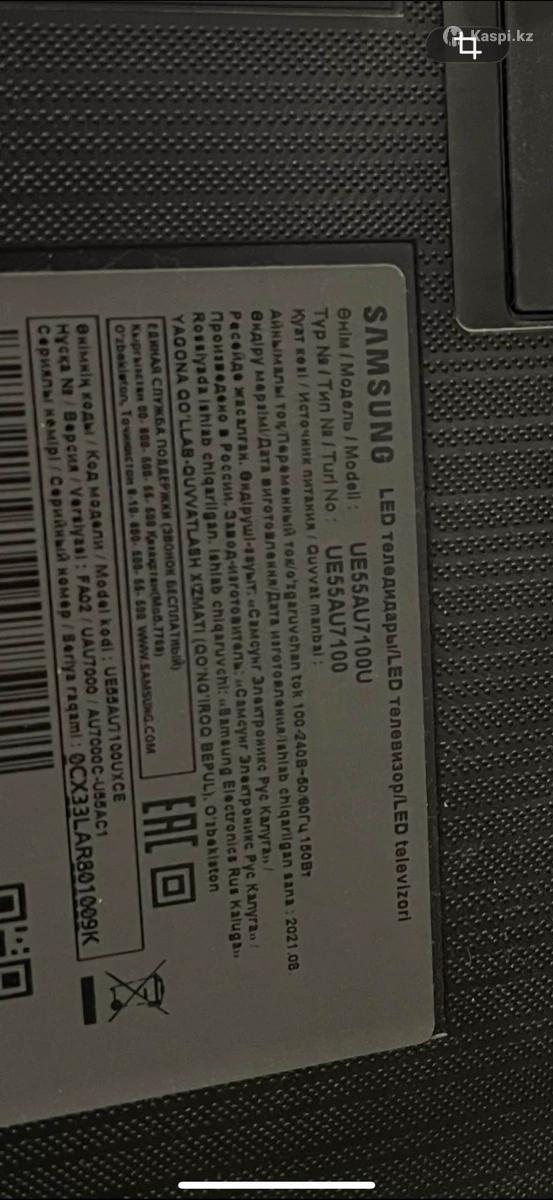Продам телевизор Samsung 55 дюймов (140 см). Покупали новым за 400 000 тг. • 4K UHD • Smart TV (Wi-Fi, интернет, YouTube, Netflix и др.) • Bluetooth • 3×HDMI, USB • Подключение телефона и ПК Состояние рабочее. Есть темные пятна на экране — учтено в цене, на просмотр не критично. Комплектация: телевизор, пульт, провода. Коробки нет. Самовывоз центр города. Реальному покупателю щедрый торг.