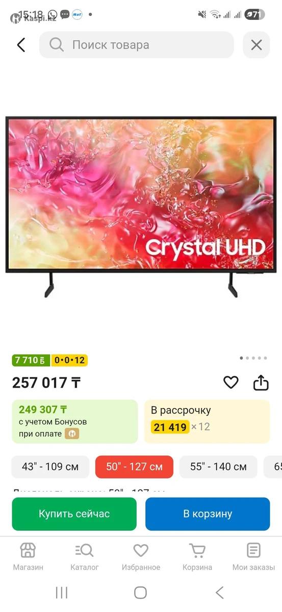 Коробка пульт документы Разрешение: 4K Ultra HD (3840 x 2160). Процессор: Crystal Processor 4K, который отвечает за апскейлинг (масштабирование) контента низкого разрешения до уровня 4K. Тип матрицы: VA, что обеспечивает глубокий черный цвет и хорошую контрастность (3000:1), но имеет ограниченные углы обзора по сравнению с IPS-панелями. Подсветка: Edge LED (боковая). Частота обновления: 60 Гц (в некоторых регионах указывается как 50 Гц в зависимости от стандарта электросети). Поддержка HDR: HDR10+ и HLG для улучшения детализации в светлых и темных сценах. Smart TV и интерфейс: ОС Tizen: Обеспечивает доступ к популярным стриминговым сервисам (Netflix, YouTube, Disney+ и др.) и экосистеме Samsung SmartThings для управления умным домом. Игровые функции: Режим ALLM (автоматический переход в игровой режим с низкой задержкой) и технология Motion Xcelerator для плавности динамичных сцен.