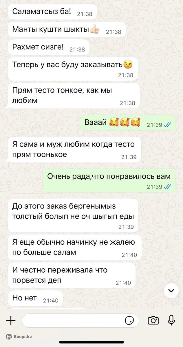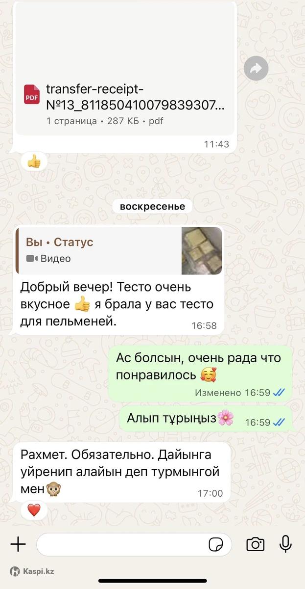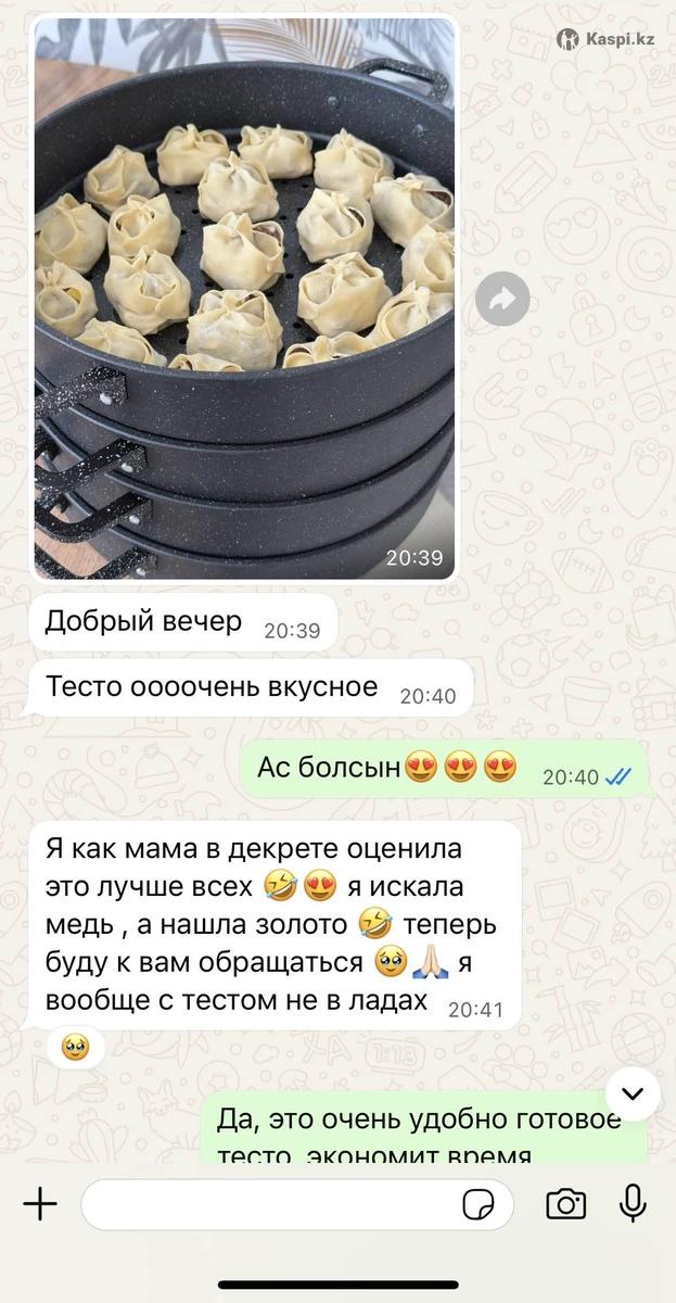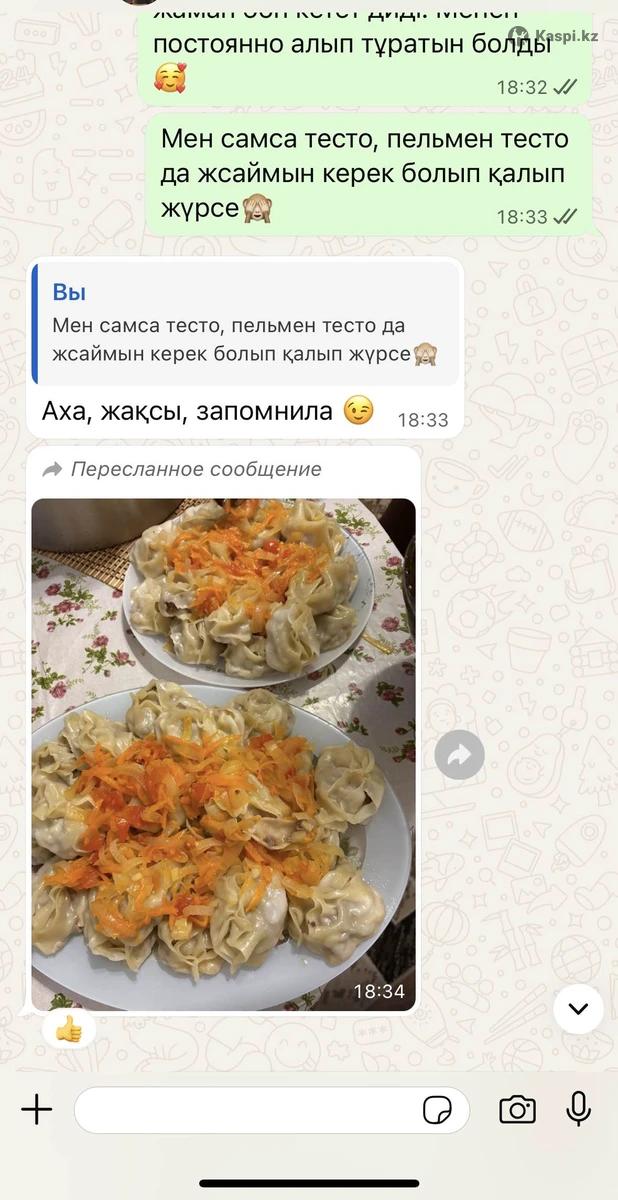 Я многодетная мама в декрете, работаю из дома. Готовлю и продаю такие домашние продукты. Всё натуральное, чистое, делаю всё своими руками. Для меня важно не только заработать, но и чтобы мои продукты были качественными и вкусными. В месяц Рамазан это очень удобно — можете делать заказы. Если закажете заранее, приготовлю всё свежее. Многие клиенты уже возвращаются снова, отзывы хорошие 👌 Тесто для мант 40шт 1800тг Жайма на бешбармак 2сред.круга 2500тг Тесто для пельменей 100шт 1500тг Пельмени кг 3800тг Тесто для самсы (песочное) кг 3000тг